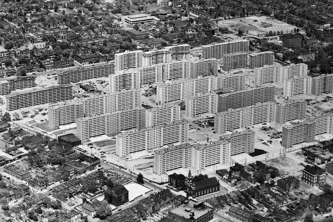 Рост трущоб провоцировал миграцию зажиточного среднего класса в пригороды. Вместе с «бегством белых» города теряли их налоги, стоимость недвижимости в центральной части мегаполисов (даунтаунах) падала, и муниципальные власти были крайне заинтересованы в реабилитации районов, словно сошедших со страниц книг Чарльза Диккенса. Федеральное правительство в законе о жилье 1949 года выделило на эти цели целый миллиард долларов (более $10 млрд в современном эквиваленте), и процесс сноса трущоб пошел. Тем более что архитекторы предложили для них идеальную, по их мнению, замену — заимствованные из Европы идеи Ле Корбюзье.