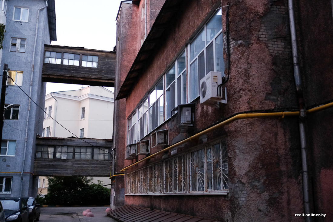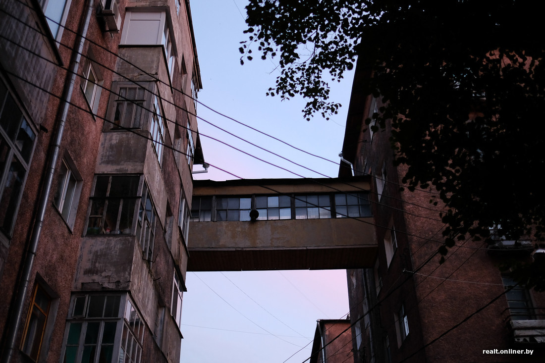 Если же чуть отклониться от привычного маршрута и заглянуть в подворотню, то можно найти необычный образчик советской архитектуры — дом-коммуну, получивший пафосное название «Культурная революция». Здания в стиле конструктивизма соединены подвесными переходами.