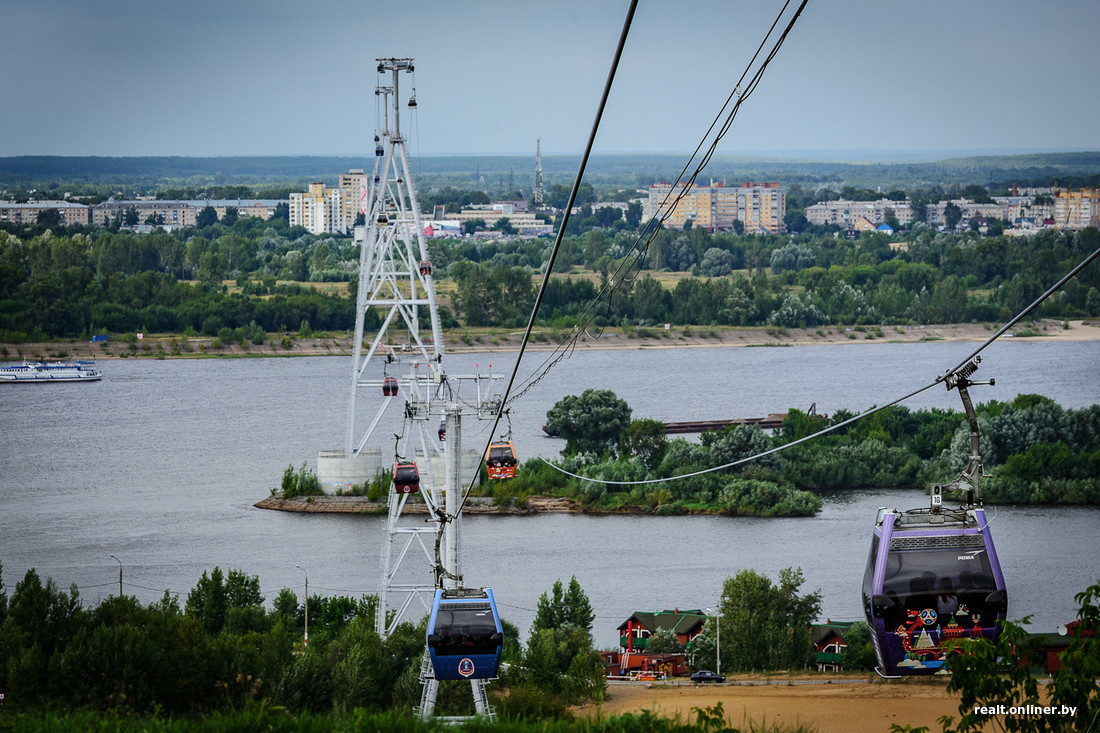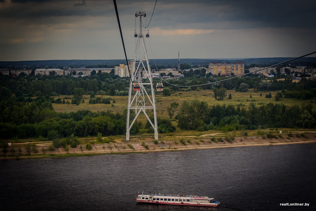 Про канатку протяженностью более 3,5 километра нужно сказать особо. Изначально она должна была выполнять транспортные функции — соединять Нижний Новгород с живописным городом Бор (население — 78 тысяч человек), где находится много дач и частных домов... Это что-то вроде легких мегаполиса, куда устремляются за свежим воздухом, тишиной и спокойствием.
