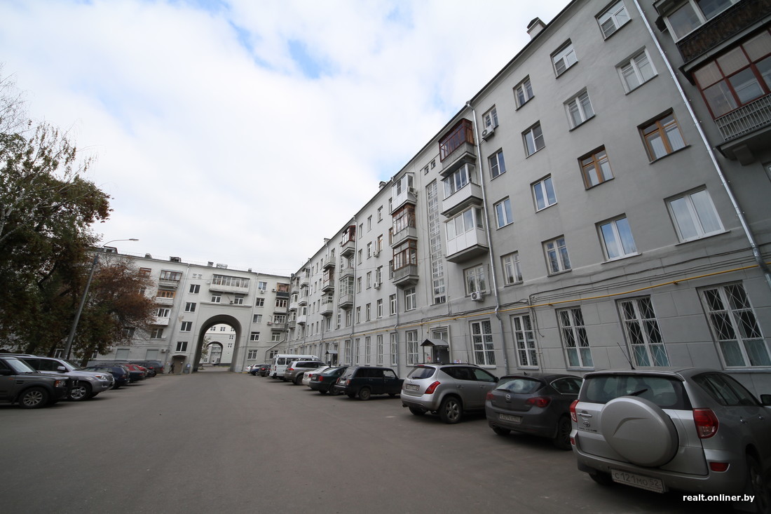 Интересна задумка: архитекторы посчитали, будто советские граждане не будут обременены бытом. Потому в квартирах не было кухонь — зато внизу располагалась столовая. Но вдруг что-то пошло не так... Как рассказывали нам нижегородцы, сейчас здесь по-прежнему находятся квартиры, которые пользуются спросом на рынке недвижимости.