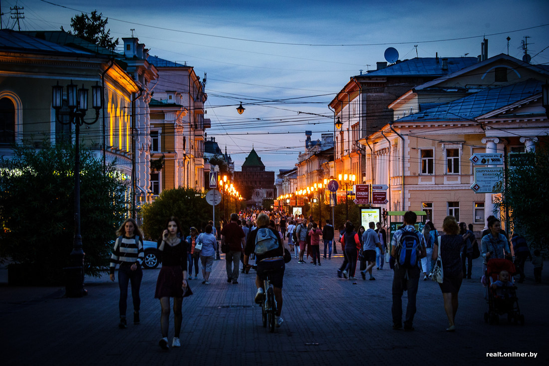 А еще в городе можно гулять, то есть он не отдан безоговорочно автомобилям. Много локаций, куда приятно пройтись теплым летним вечером. Особенной любовью нижегородцев пользуется пешеходная улица Большая Покровская.