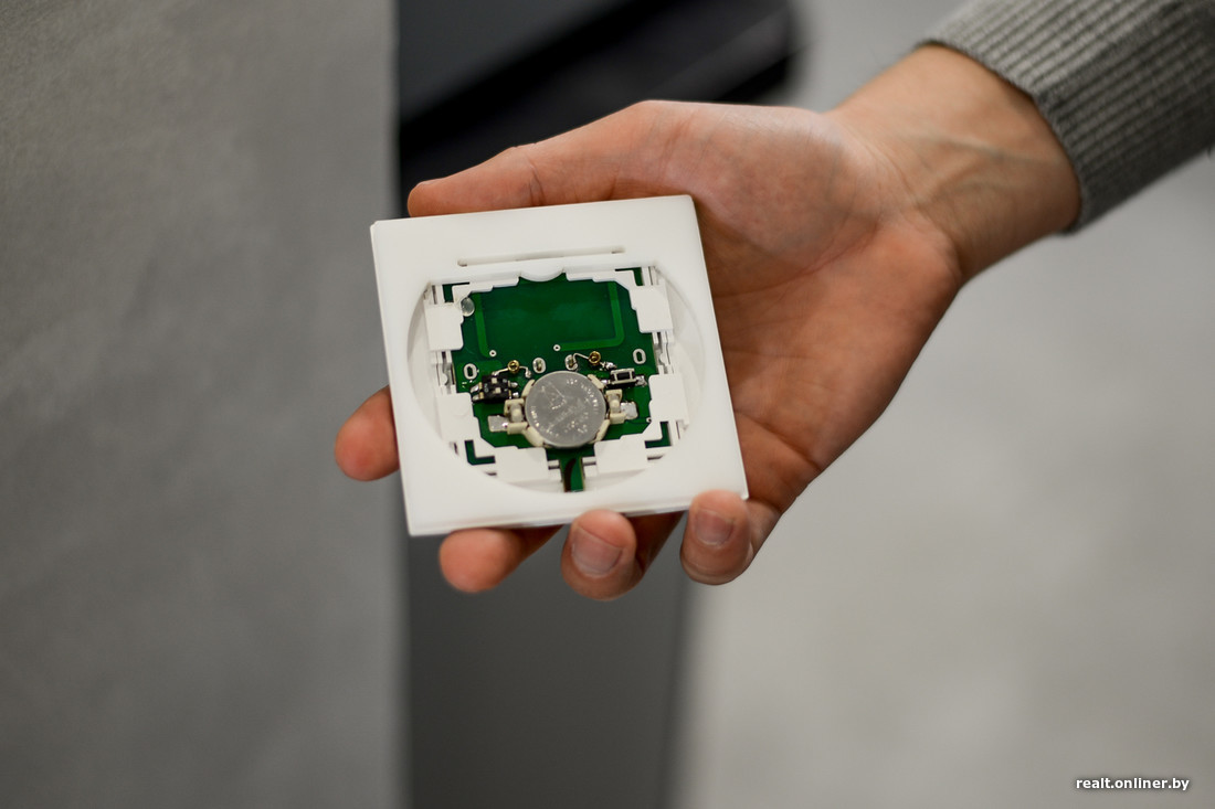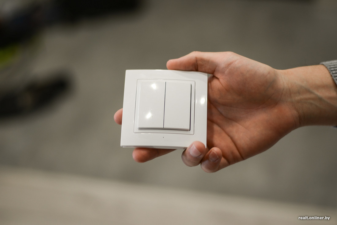 — Что касается освещения квартиры, то система состоит из беспроводных выключателей, радиоуправляемых блоков и USB-адаптера. Блок ловит сигнал и в зависимости от задачи либо замыкает, либо размыкает цепь. Таким образом подается или снимается питание на каждый светильник, к которому под потолком проведен провод. Управлять системой можно непосредственно при помощи клавиш выключателей, с пульта и с телефона через приложение, что очень удобно. Один выключатель стоит около $20, блок — примерно столько же. Но в целом, если вычесть стоимость штробления и других работ, по сравнению с традиционным способом организации освещения и электрики в плане цены то на то выходит, — объясняет Алексей.