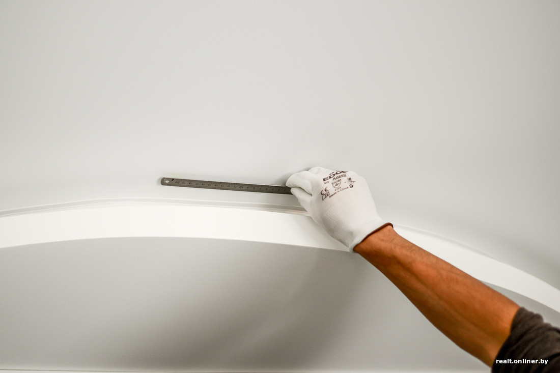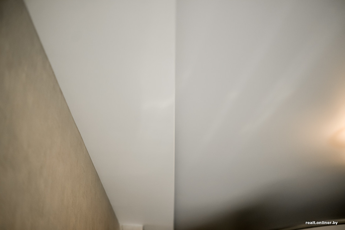 — Первое впечатление достаточно неплохое, — подводит итоги многомесячной работы специалист. — Ничего смертельного не обнаружено, хотя мелочи есть. Первое, что мне бросается в глаза, — это работа с гипсокартоном на потолках. Ширина короба не везде одинаковая. Разбежка есть, и она составляет 2—3 миллиметра. Понимаю, что это видят только мои придирчивые глаза, но все же. Не говорю, что это надо срочно разбирать, просто показываю, что вижу. В гостиной полукруг вышел шире, чем основной контур. А линия натяжного потолка немного ломаная. Разница в ширине короба есть и в спальне.