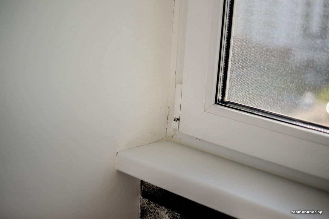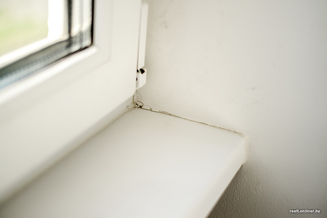 Обратный уклон двух подоконников и не самую педантичную обработку стыка подоконника и стены также заносим в список мелких прегрешений. Туда же отправляем подрезку декоративного камня и место его соединения с окном на лоджии.