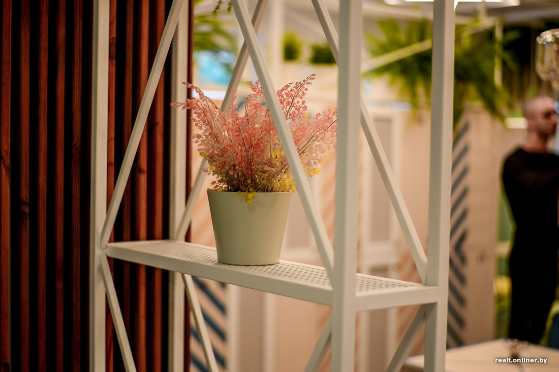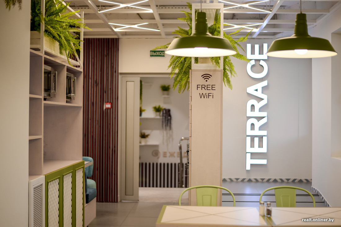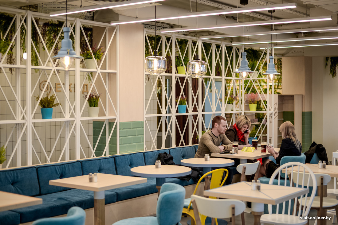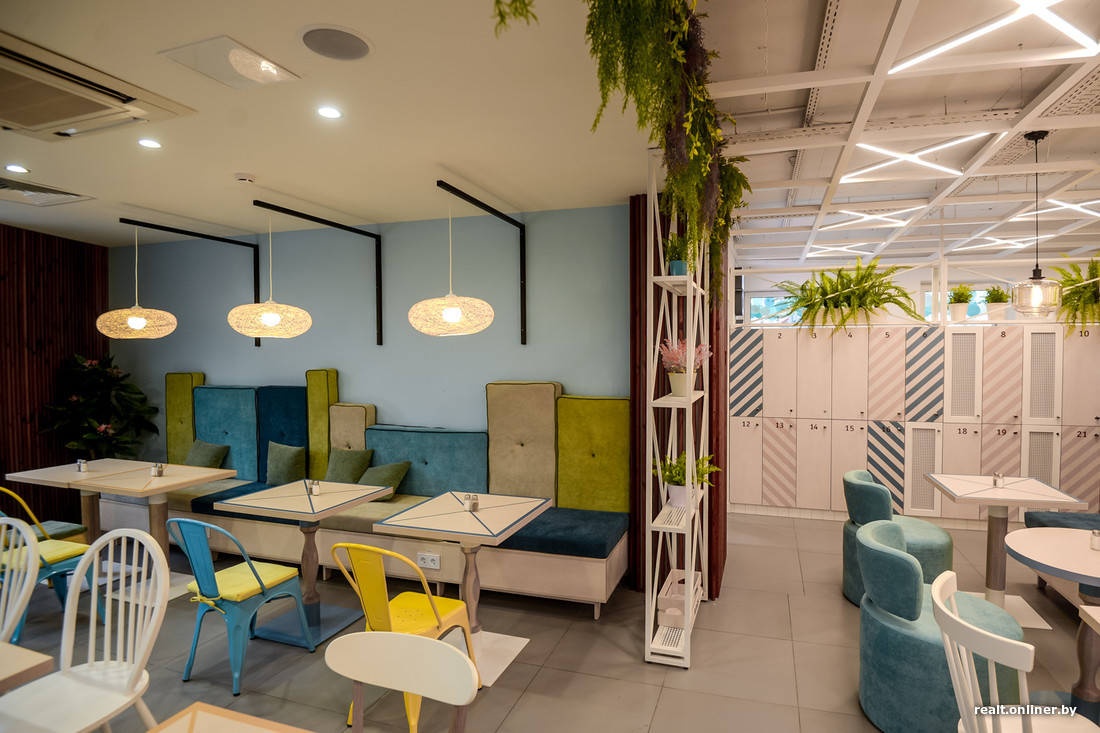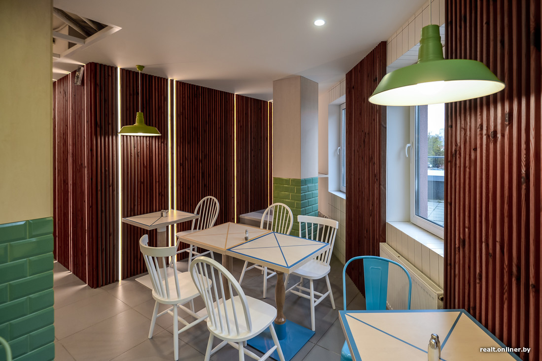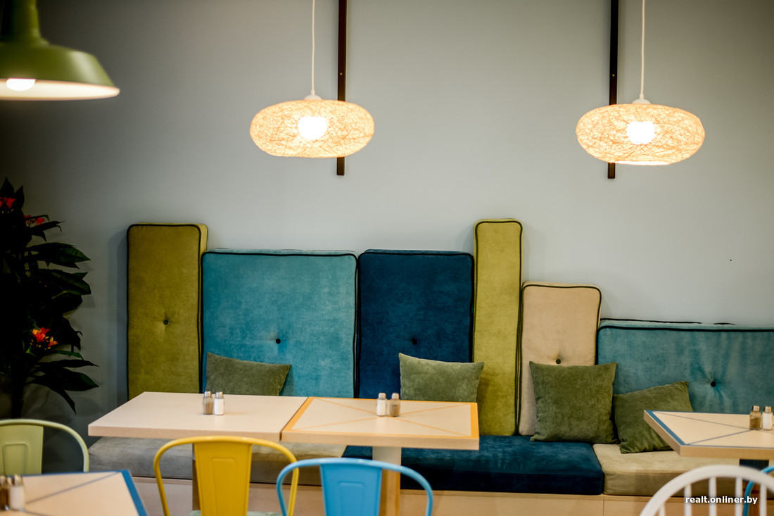 — Гаспадыня ўстановы — маладая і энергічная дзяўчына, яна хацела вывесці беларускі рынак грамадскага харчавання на новы ўзровень, — прокомментировал Onliner.by дизайнер ZROBYM architects Алексей Кораблев. — Нам трэба было стварыць моцную альтэрнатыву аналагічным установам. Таму ў канцэпцыі мы для сябе вылучылі некалькі галоўных ідэй: зрабіць памяшканне максімальна светлым, чыстым і камфортным для штодзённага наведвання. Для гэтага лепш за ўсё падыходзіць спалучэнне зеляніны і натуральнага дрэва, светлых, разбеленых колераў. Для нас важна было, каб чалавек, які ўвесь час будзе заходзіць сюды, заставаўся б у добрым настроі, быў сыты і задаволены.