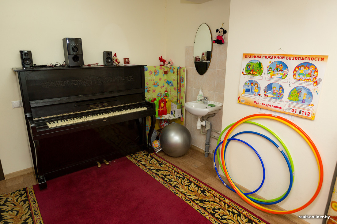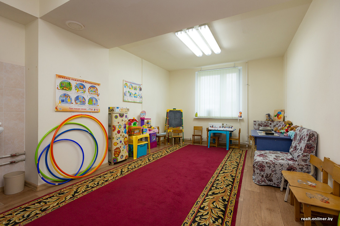 На первом этаже также расположилось помещение, без которого общежитие в наших широтах немыслимо, — комната воспитателя (сотрудник это универсальный: занимается и детскими, и взрослыми вопросами). Также нашлось место для методического кабинета и спортивно-игровой комнаты, где воспитатель проводит занятия с детьми — от рукоделия до подготовки к школе.