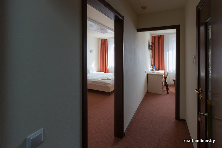 К 78-му чемпионату мира по хоккею, свалившемуся на Беларусь, готовились всей страной еще с 2009 года: реконструировали дороги, проектировали ледовые арены и строили все новые и новые здания. Тогда-то белорусы и узнали, что панельными могут быть не только дома, но и целые гостиницы. Бюджетные девятиэтажные отели открылись в разных концах города и неожиданно для многих получили довольно неплохие отзывы на международных сервисах по бронированию жилья. Работают они и сейчас, принимая тех, кто готов платить около $50 за двухместный номер с завтраком. Впрочем, одной из четырех типовых минских гостиниц довелось пережить чудо второго рождения: из места, куда приезжают на сутки-двое, она превратилась в настоящий дом для 335 человек. Onliner.by побывал в новом общежитии Национального аэропорта Минск и посмотрел, как обустроена постоянная жизнь в когда-то временных номерах.