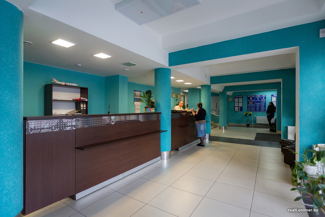 Изменилось разве что назначение некоторых помещений. Бирюзовый ресепшен с высокой стойкой регистрации стал местом «пограничного контроля»: дежурный по общежитию следит за порядком днем и ночью, проверяет документы посетителей.