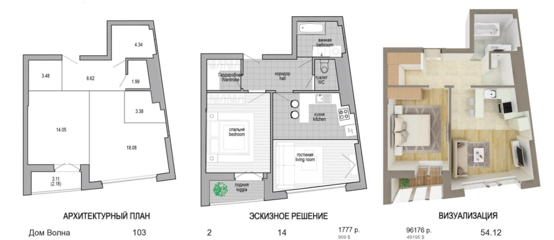 Алина пришла за популярной нынче «евродвушкой» — самой дешевой в «Волне». Такая квартира площадью 42 метра на третьем этаже обойдется в $36 650.