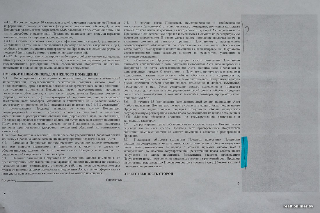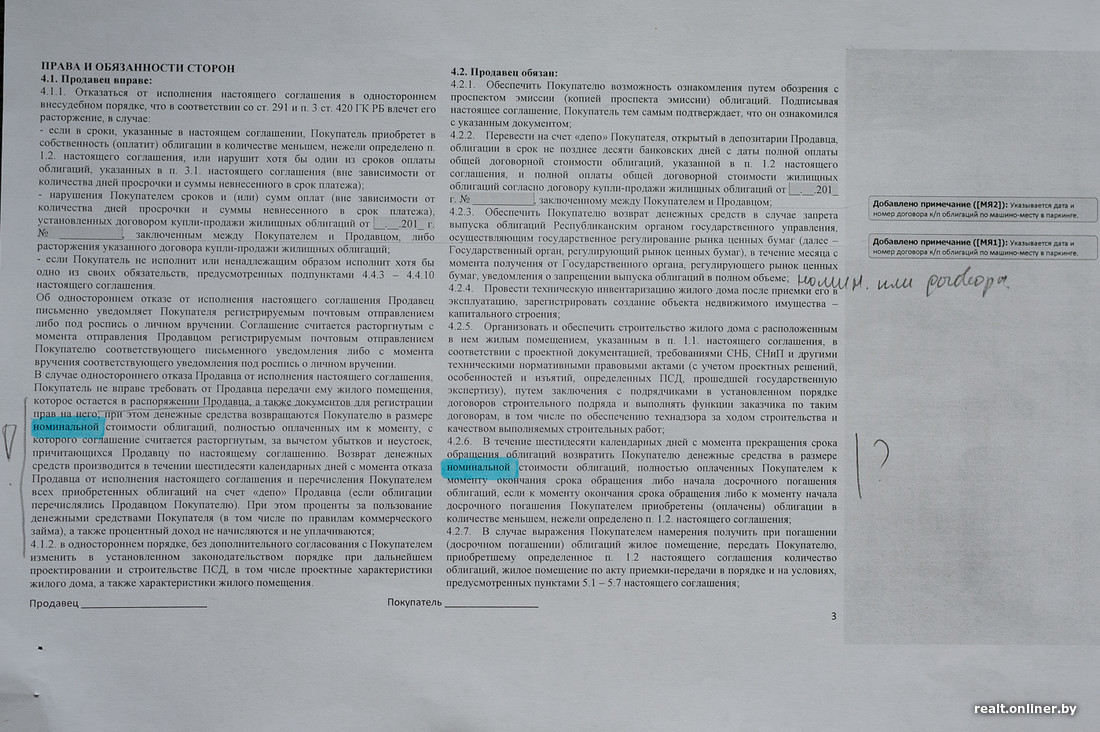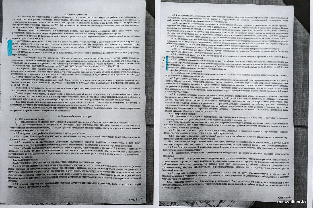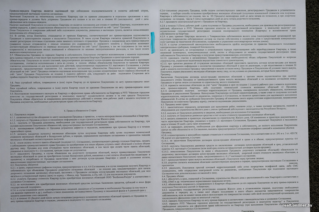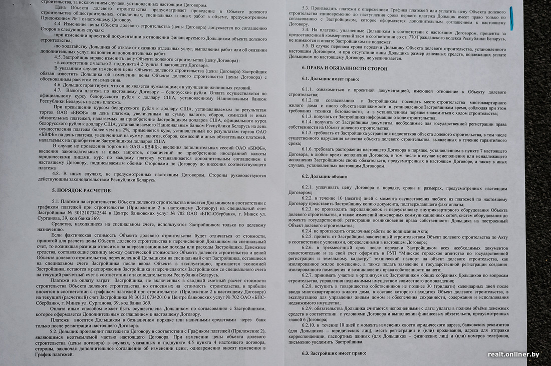 — Меня смущает пункт 7.22, в котором говорится, что при досрочном расторжении договора застройщик возвращает покупателю фактически внесенные им средства в белорусских рублях (за вычетом неустойки) в течение 180 дней с даты расторжения договора. Это же очень долго.