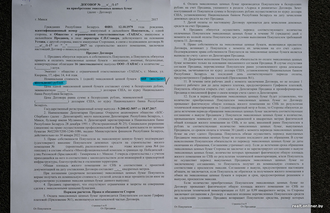 — Номинальная стоимость жилищной облигации действительно составляет 660 белорусских рублей. И такое грозит вам в двух случаях: если вы отказываетесь от исполнения договора и если с нами как с застройщиком что-то случается и мы не осуществляем эмиссию заново. У нас в обеспечении поручители, и они будут возвращать эти средства.