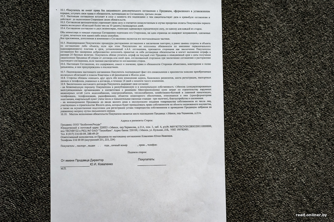 — Вы в курсе, что это нормативный документ, который, согласно указу президента №263, подлежит регистрации в Мингорисполкоме? То есть он соответствует существенным условиям по указу, мы его составили так, чтобы он соответствовал.