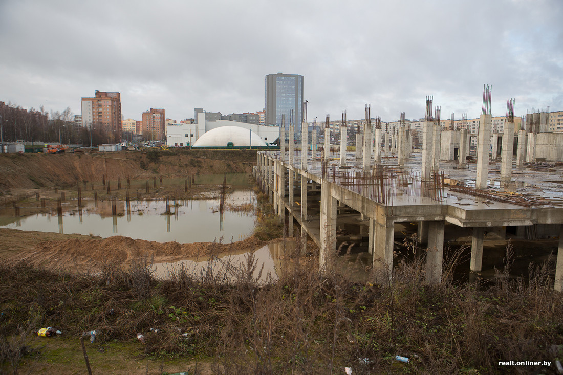 В строительство намерены привлечь кредитные средства как белорусских, так и зарубежных инвесторов. Назначение не изменится: это все так же будет торгово-развлекательный центр. Правда, название, вероятно, придется придумать новое, так как с прежним связаны не лучшие ассоциации. Срок, когда стройка возобновится, а тем более закончится, не известен.