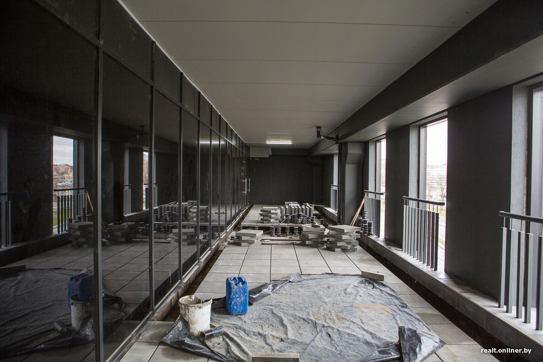 В последний раз Onliner.by упоминал о DiaMond в 2015 году, когда на площадке стоял лишь «скелет» здания. Сейчас внешне оно полностью готово, внутри заканчиваются отделочные работы, ведется поиск арендаторов.