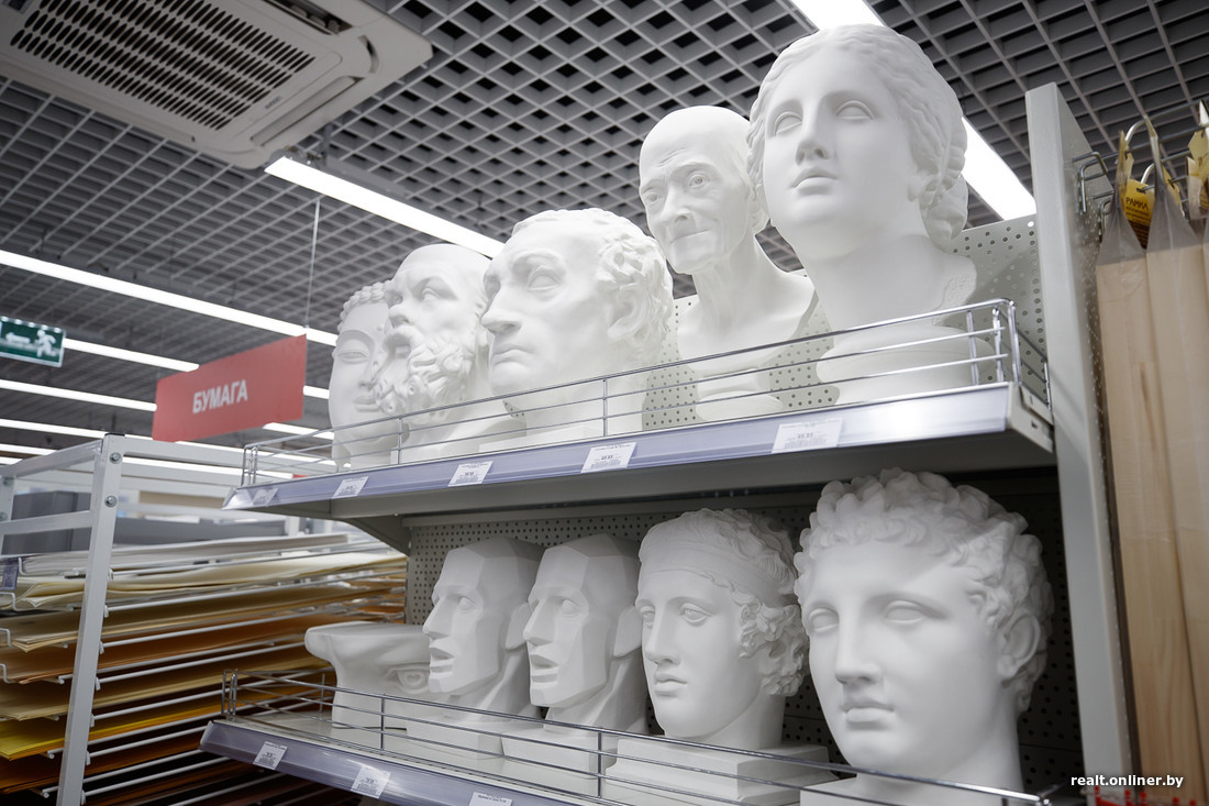Гипермаркет работает в режиме самообслуживания, виды творчества поделены на зоны и полки. В зале имеются сканеры штрих-кодов, с помощью которых можно проверить цену на тот или иной товар. Кроме того, имеются кнопки для вызова консультантов.