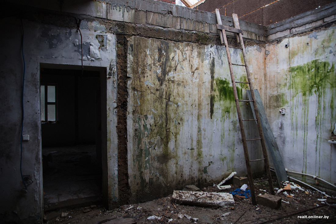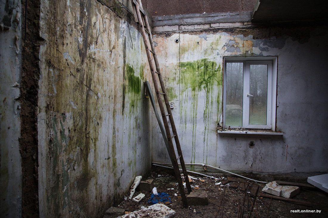 Из-за сырой погоды внутреннюю сторону стен уже облюбовала плесень, вместо пола под ногами хлюпает внушительный слой грязи.