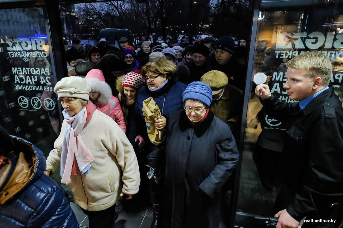 Похоже, минчанам никогда не надоест радоваться открытию новых торговых объектов. Взрослые, а то и убеленные сединами горожане воспринимают впервые распахнутые службой охраны двери как нечто волшебное и неповторимое. Вот и сегодня вечером, к моменту официального открытия супермаркета Bigzz на улице Кальварийской, 4, возле входа собралась приличная толпа, которая страстно жаждала попасть внутрь, желательно до озвученного для всех времени. Новый круглосуточный супермаркет появился в культовом для многих жителей Минска месте, заняв площади популярного в прошлом магазина «Радиотехника».