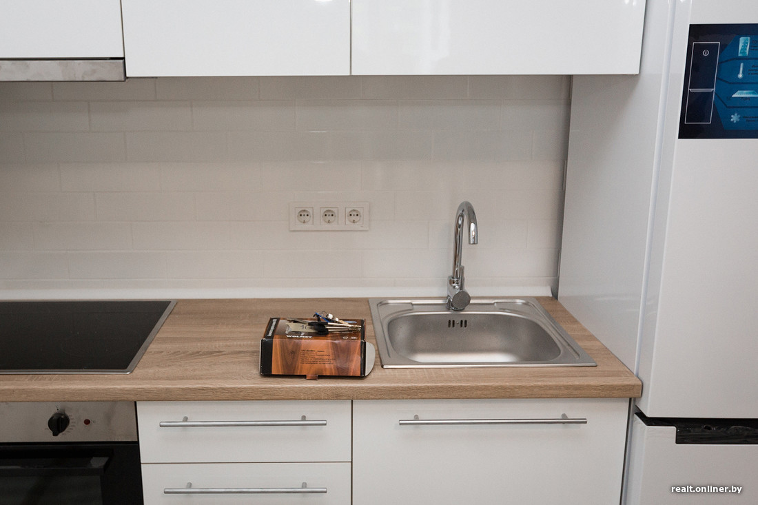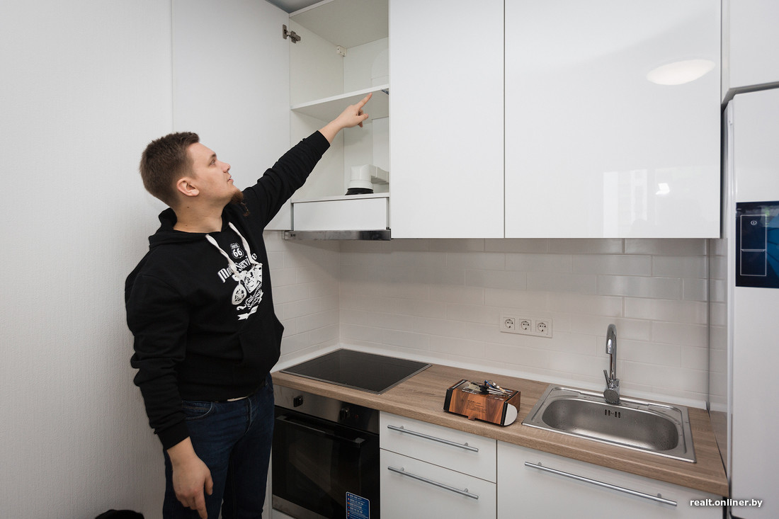 Квадратный метр в малогабаритной панельной квартире обошелся молодому человеку в $1300 по курсу. Неслабо. В эту сумму включены традиционная «астошная» отделка, небольшой кухонный гарнитур, частично бытовая техника и полное оборудование ванной комнаты. С учетом того, что в студии 26 «квадратов», итоговая цена получается почти $34 тыс. — столько в Минске сейчас стоят 30—35-метровые «хрущи» с отдельной кухней.