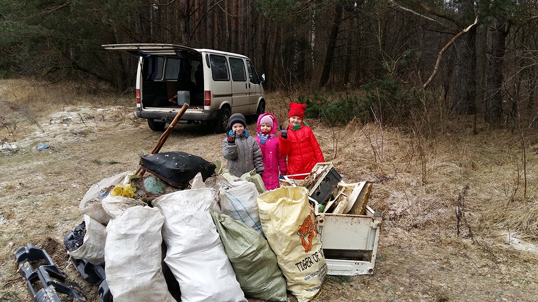 — Подобная идея возникла давным-давно. Деревня Миколаевщина — родная для меня, — рассказывает Сергей. — Я приезжаю туда довольно часто, обязательно хожу с племянниками в лес погулять. Естественно, мы замечали, как образовывались и росли горы мусора. В очередной свой визит решил, что пора бы уже претворить в жизнь давнюю задумку. Предложил племянникам: давайте уберем. Они с радостью поддержали идею.