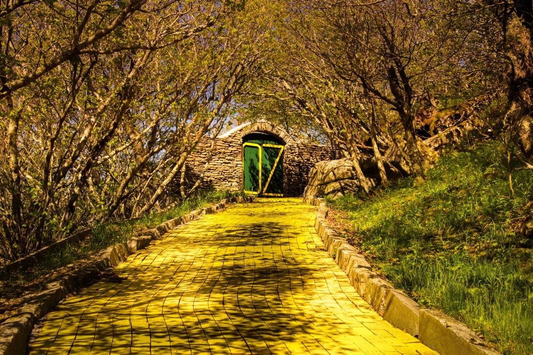 В известной книжке дорога из желтого кирпича должна была привести Дороти и ее спутников в Изумрудный город. Конечно, американцы не могли не использовать свою главную детскую книгу в качестве темы для очередного развлекательного парка. Объект проработал всего 10 лет, пока его владелец не обанкротился, но его остатки — сказочные здания и, конечно, по-прежнему удивительно яркая дорожка, вымощенная желтым кирпичом, — по-прежнему украшают живописный лес в Северной Каролине. Путешествовать по парку рекомендуется под песню Элтона Джона Goodbye Yellow Brick Road.