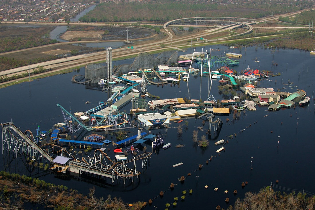 Компания Six Flags — один из крупнейших операторов семейных развлекательных парков в мире. В числе принадлежащих ей объектов с 2003 года находился и парк в Новом Орлеане, открывшийся незадолго до этого под названием Jazzland. «Земля джаза» успела поработать всего пару лет, а потом стала жертвой крупнейшей природной катастрофы в современной истории США. В августе 2005-го из-за урагана «Катрина» ее территория оказалась под двухметровым слоем воды. Около 80% всех построек парка оказались повреждены, и дальнейшая их эксплуатация была признана опасной. Инвестировать в восстановление Six Flags отказалась, а другой инвестор пока так и не нашелся. Парк и сейчас заброшен, иногда становясь съемочной площадкой для голливудских блокбастеров. В частности, здесь снимали «Мир Юрского периода» и «Планету обезьян: Революция».