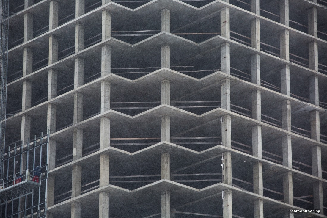 Минские застройщики любят громкие слова, красивые обещания и великие проекты. Если бы все, что девелоперы намеревались возвести в столице, было действительно осуществлено, город наполнился бы стеклянными небоскребами, чудаковатыми формами и разными архитектурными изысками. Но нет, практически все обещанные сложные проекты, доходя до стадии реализации, максимально упрощаются. Иногда это им только на пользу, но в большинстве случаев ничего хорошего в итоге не получается. Со временем к так и не построенным или построенным не по первоначальному проекту зданиям все привыкают, и жизнь идет своим чередом. Onliner.by решил напомнить, какая красота могла бы появиться в разных районах Минска, если бы не суровая реальность, недостаточное финансирование и отступления архитекторов. Во втором выпуске вспомним о бизнес-центре «Футурис», вернее его каркасе, который годами неизменно стоит на проспекте Независимости.