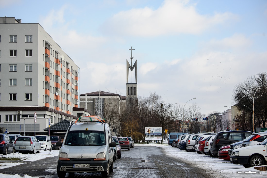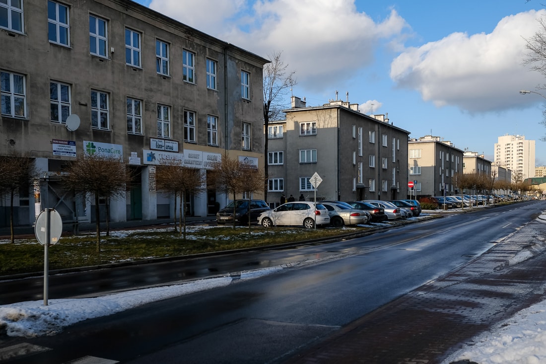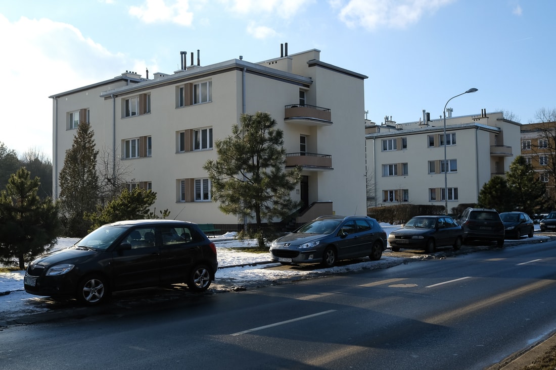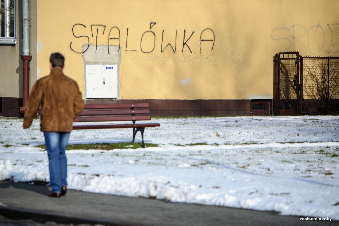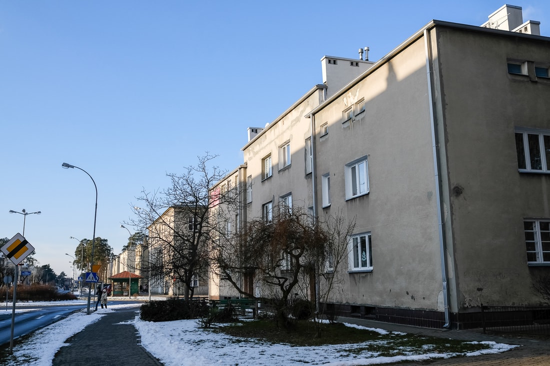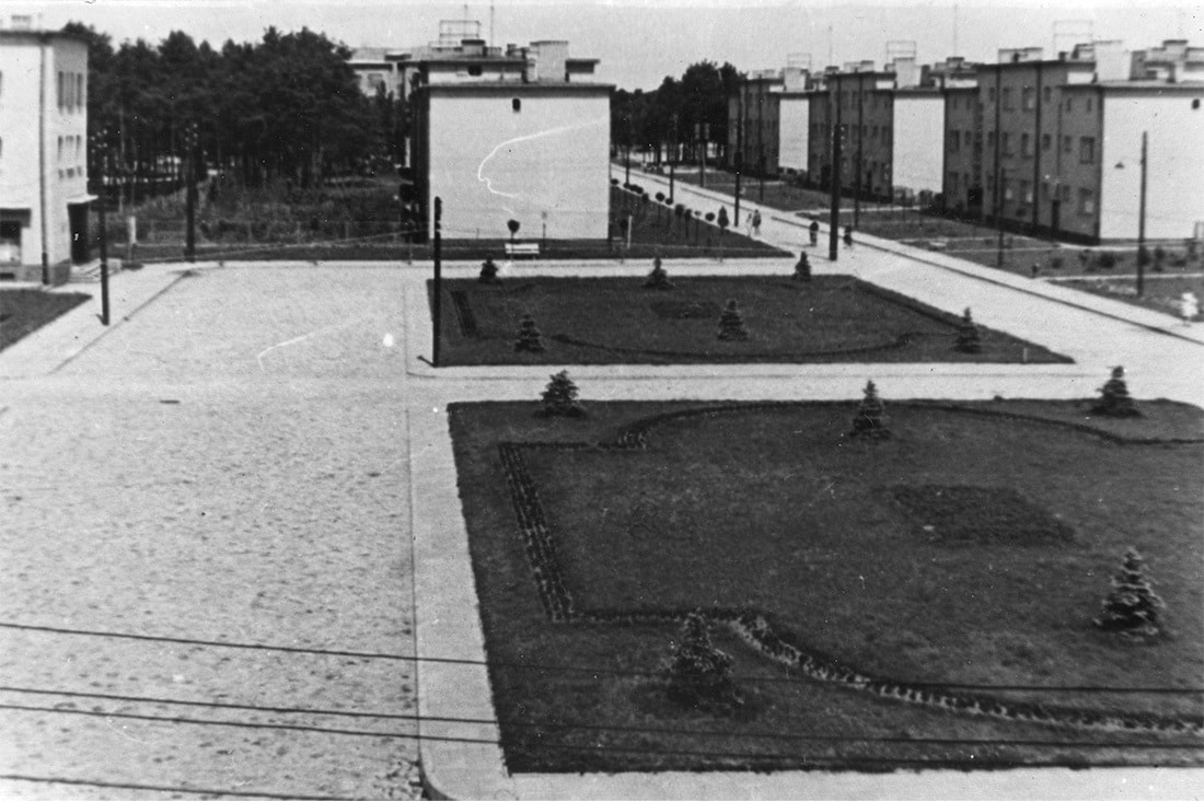 В сосновом лесу выстроились типовые трехэтажки, как будто в обычном советском соцгороде, поселке какого-нибудь тракторного или автозавода, с одним внешним отличием: в большинстве случаев города советской индустриализации сооружались уже в формах «освоения классического наследия», а в Польше по-прежнему господствовал функционализм, этот предшественник послевоенного модернизма. Дома для рабочих и мастеров отличались прежде всего количеством квартир внутри — более квалифицированные сотрудники получали бо́льшую жилплощадь.