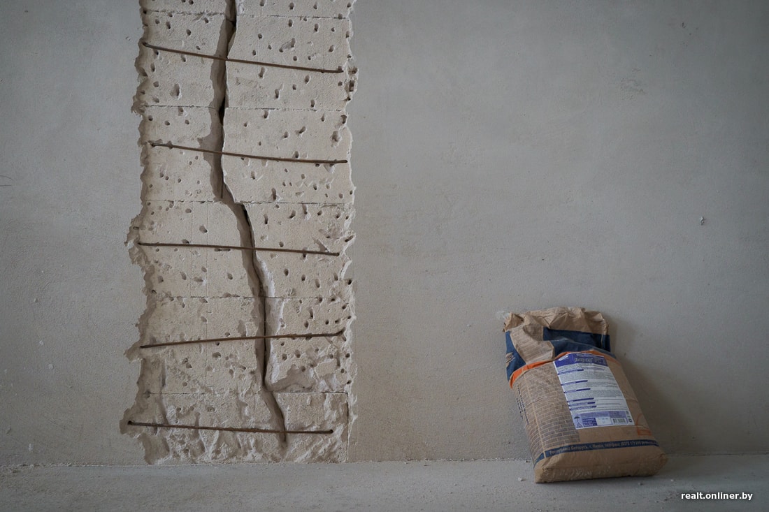 В однокомнатной квартире Юрия долго искать проблемы не приходится — все на виду: стену, которая отделяет его жилье от жилья соседки, солидно «разорвало» в двух местах. Трещины настолько впечатляющие, что мгновенно приковывают к себе взгляд, отводя его от красивого панорамного окна. Одна «молния» находится в месте примыкания газосиликата к монолитной колонне, вторая — посреди блоков.