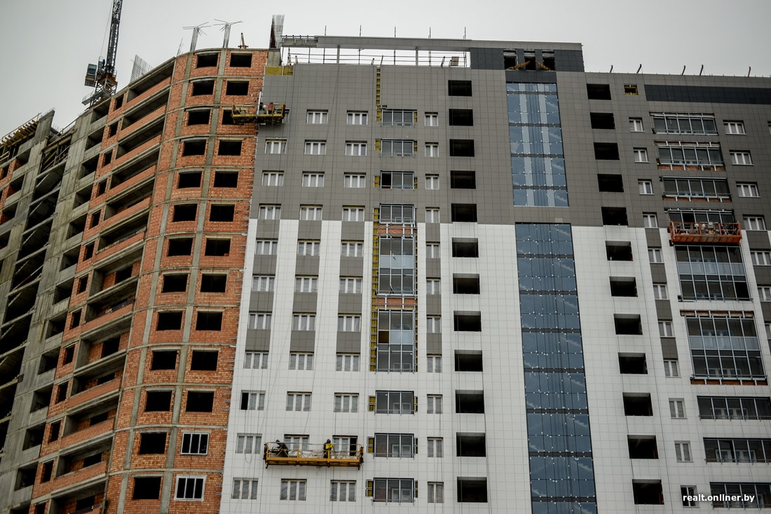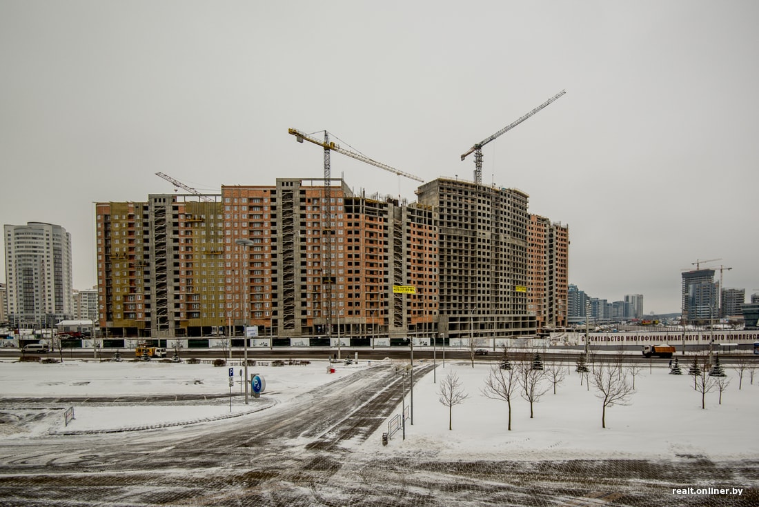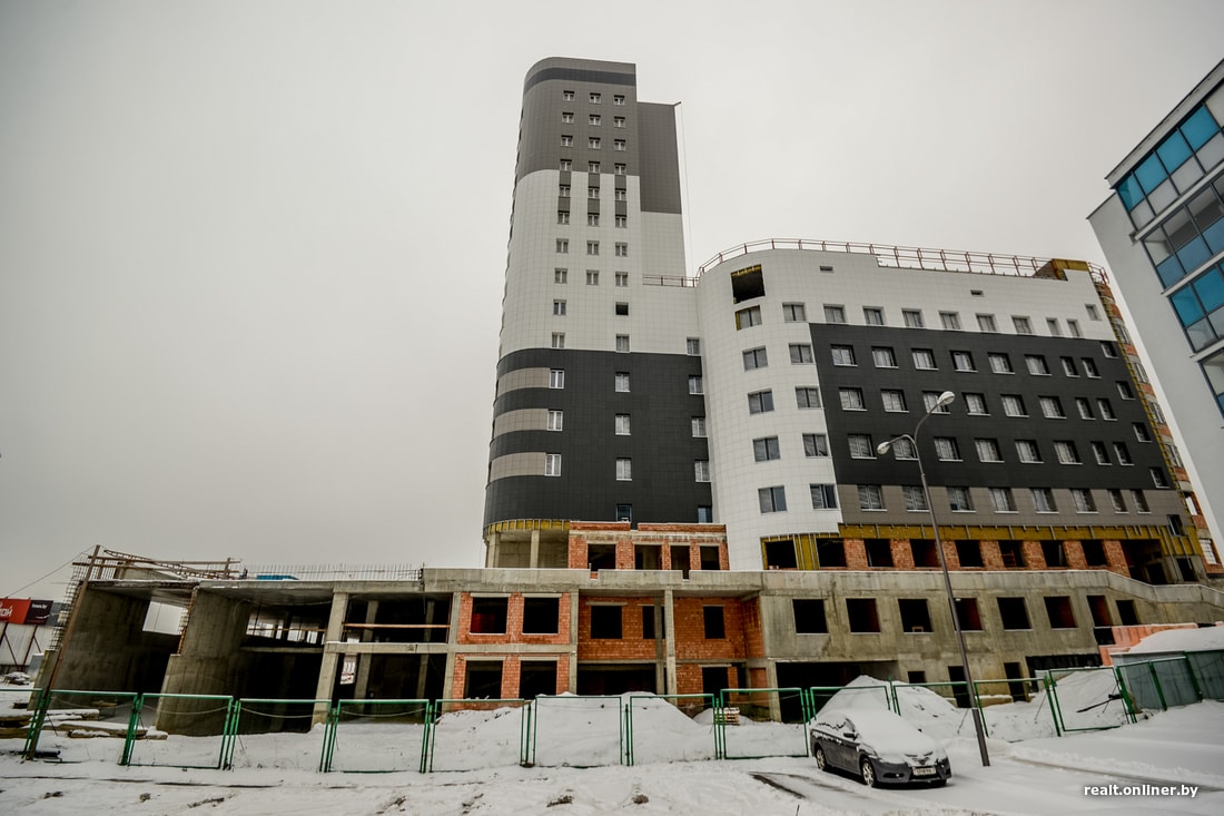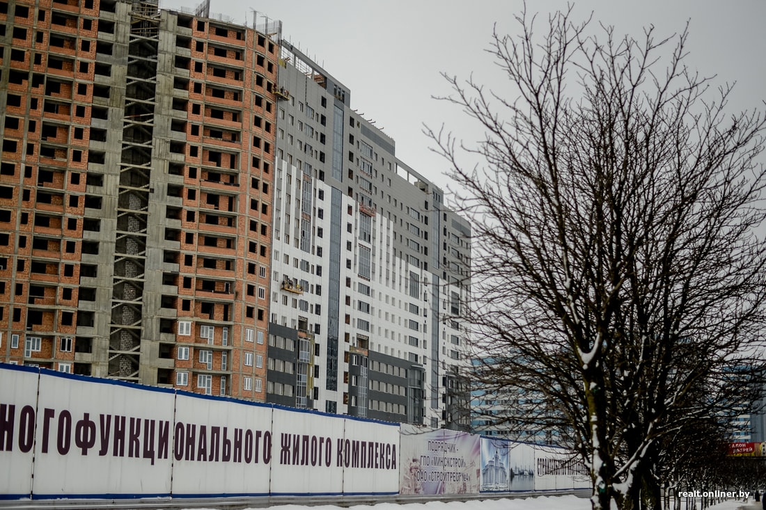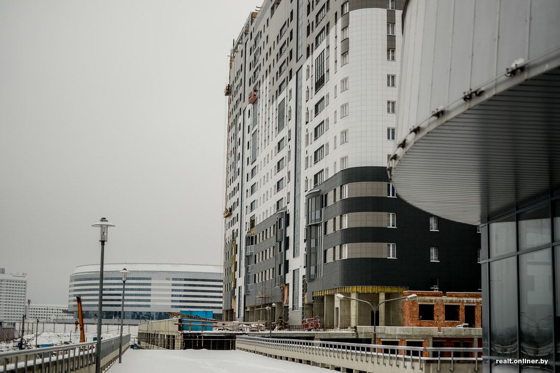 Вообще, дела на стройплощадке уже с 2013 года шли так себе. Риелторы, занимающиеся продажей квартир в этом доме, убеждали: это все потому, что проект немного изменили и добавили в гостиничную часть жилые помещения. Срок сдачи перенесли c 2014 на 2016 год. Благие намерения обернулись неудачей — вместо архитектурной красоты гости чемпионата и посетители «Минск-Арены» в итоге видели унылый строительный забор.