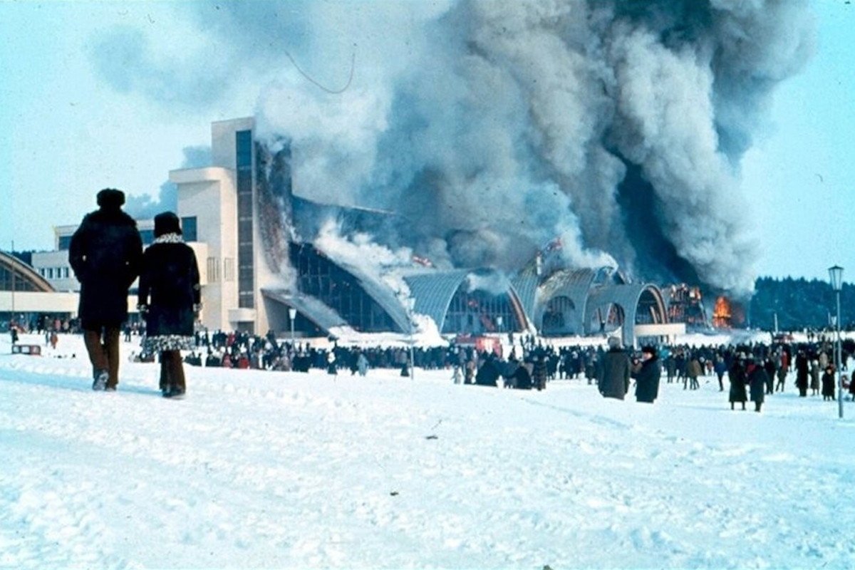 Когда пожарные прибыли на место, манеж уже вовсю полыхал, а сквозняк из выбитых окон создавал настоящий огненный вихрь. Металлические соединения теряли несущую способность — потолок рухнул, но все пожарные успели отойти в безопасное место.