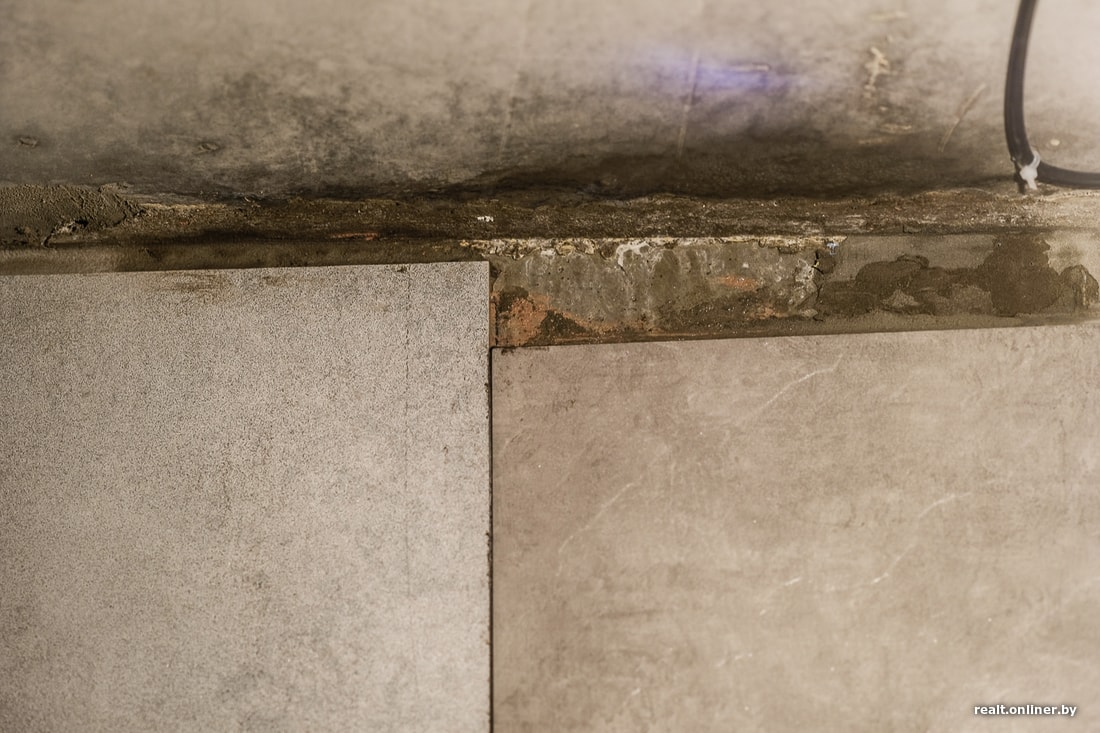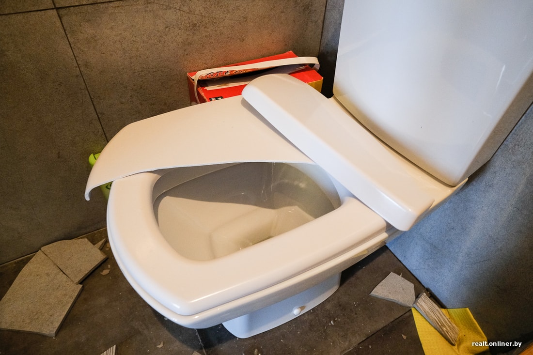 Через какое-то время заметила, что влажность начала распространяться: постепенно конденсат пошел к той стене, по которой проложены провода. Стало уже не до шуток. С моей стороны опять посыпались звонки застройщику. Пока они обещали все исправить, произошло ЧП: в ночь с 13 на 14 февраля я услышала громкий хлопок. Сквозь сон не поняла, что к чему. Решила подняться и посмотреть, что же произошло. Оказалось, что в санузле «отстрелила» керамогранитная плитка размером 60 см на 60 см и весом почти 10 килограммов! Разбилась сама плитка, крышка унитаза, плитка на полу, поцарапан унитаз. А ведь это все новое!