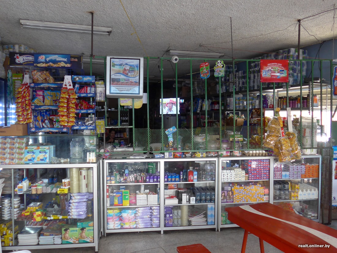 Заходим в ближайший магазин купить воды. Большое помещение, справа игровые автоматы, слева пластиковые столы и стулья. Перед нами большая зеленая металлическая решетка. За ней продавцы и весь товар. По-английски просишь продать воду, а в ответ кивание головой и никаких действий. Только испанский, и никакого другого языка. Договорились. Купили.