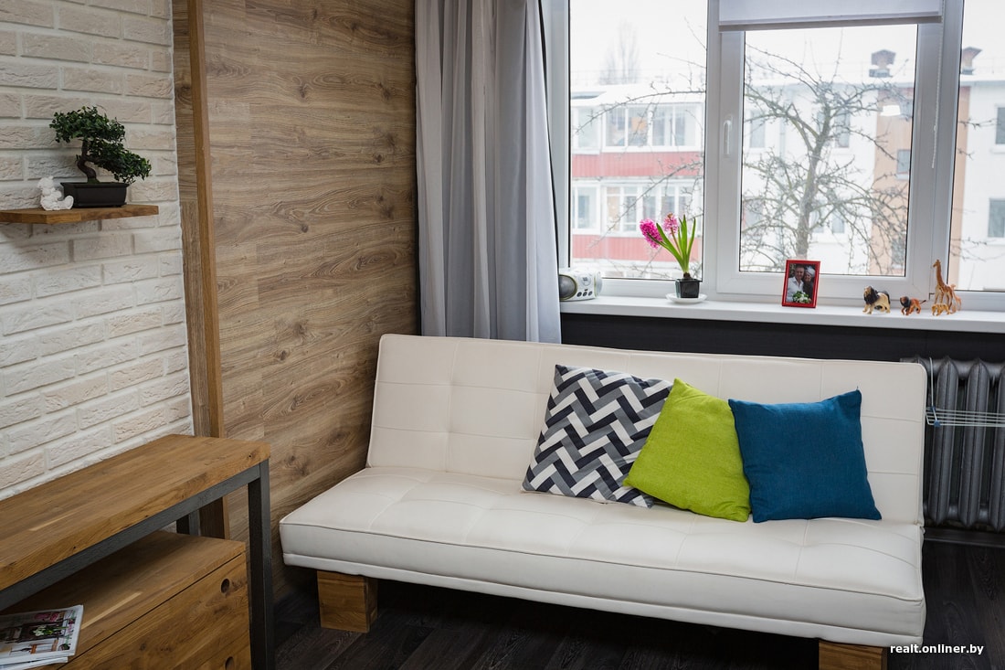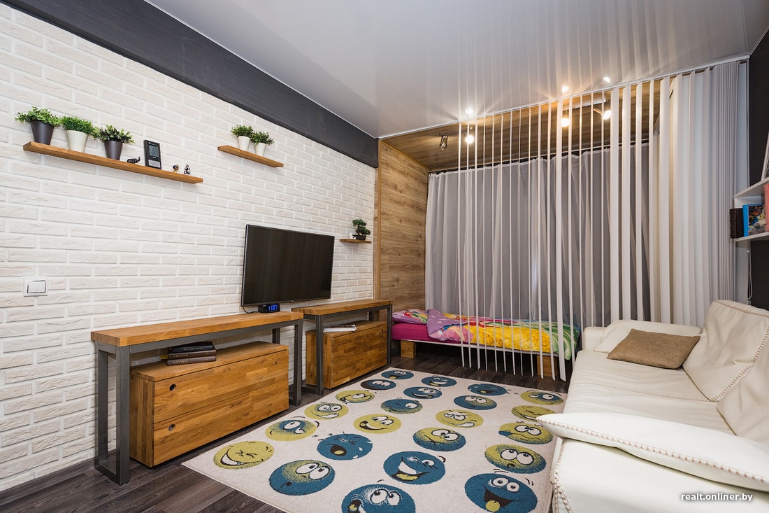Когда у нас с мужем появилась однокомнатная квартира, постоянно жить в ней мы не планировали. Мы собирались жить за городом и активно строили дом. А потому ремонт в квартире решили сделать в стиле «гостиничные апартаменты» (чтобы было где остановиться, когда будем приезжать в Минск). Однако по ходу ремонта ситуация несколько изменилась. Стало понятно, что в городе нам придется проводить гораздо больше времени, чем предполагалось. И для удобства проживания в квартире трех человек (мы с мужем и маленькая дочка) мы придумали и реализовали интересные идеи.