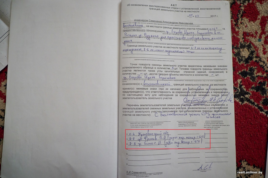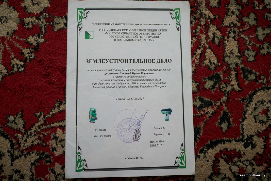 Перед тем как окунуться в мир удивительных заседаний и неожиданных решений, Ирина в марте 2017 года еще раз обратилась в Минское областное агентство по государственной регистрации и земельному кадастру, заказав землеустроительное дело для восстановления границ земельного участка. Документ получился объемный и очень любопытный.
