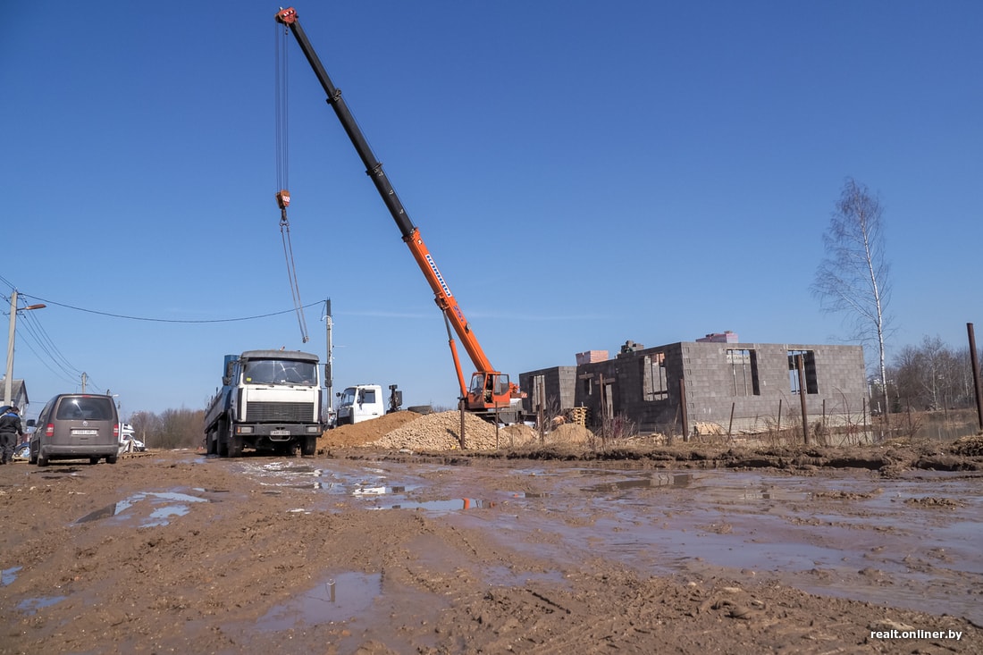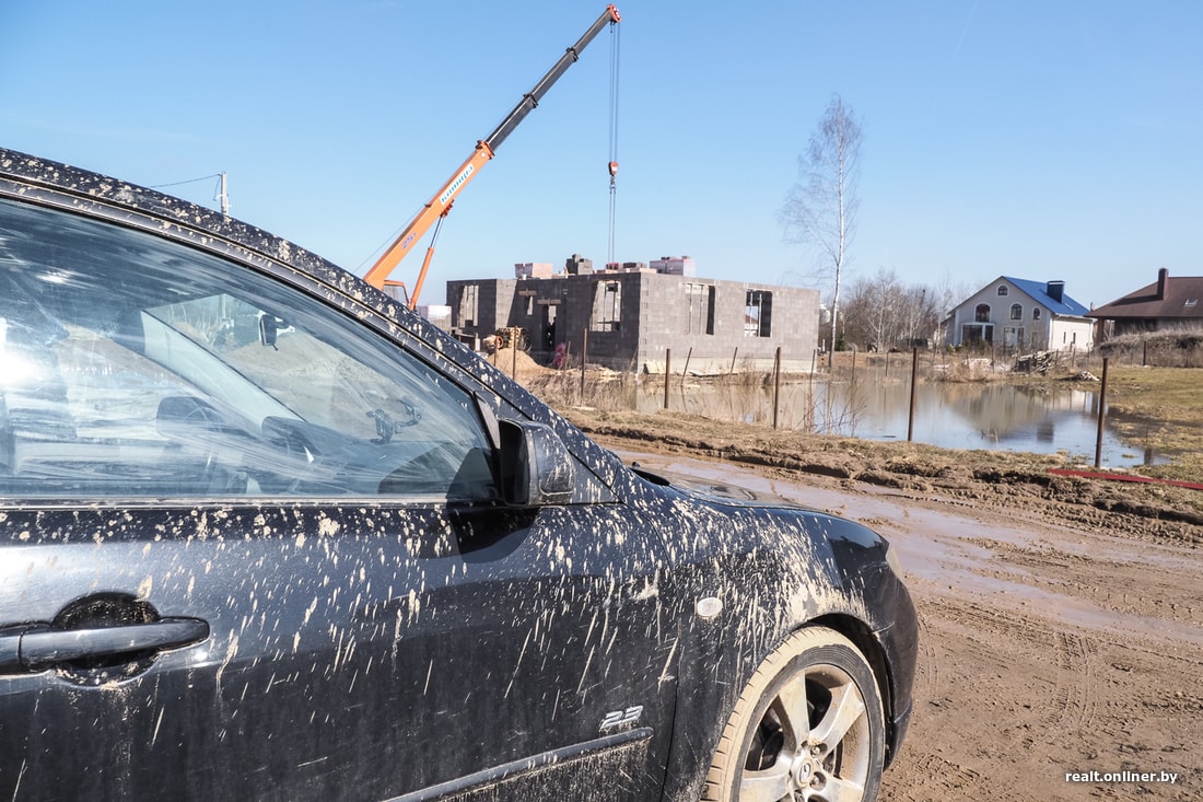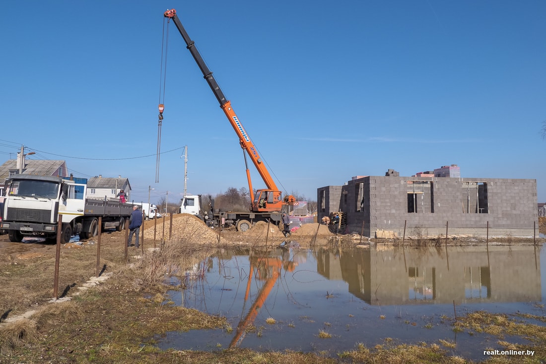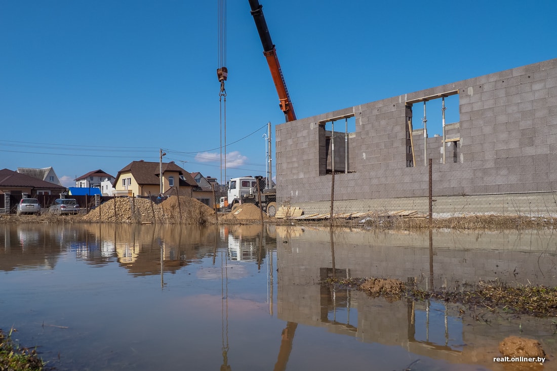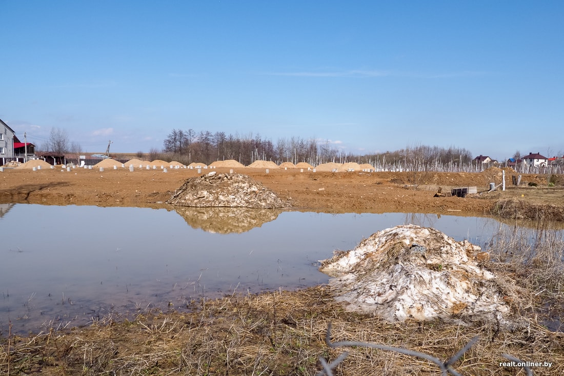 Сейчас, когда снег почти растаял, земля, принадлежащая Андрею, превратилась в озеро. Из 13 соток затоплено порядка 9, причем слой воды солидный — лужи далеко не по щиколотку. Это стопорит стройку и делает ее значительно дороже. Молодому человеку уже пришлось поднять фундамент на 50 сантиметров, что потянуло дополнительные траты в размере примерно $4500 в эквиваленте. Из-за воды не может Андрей взяться и за строительство террасы на заднем дворе.