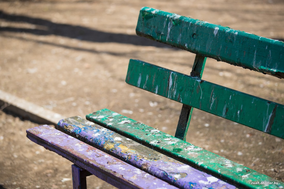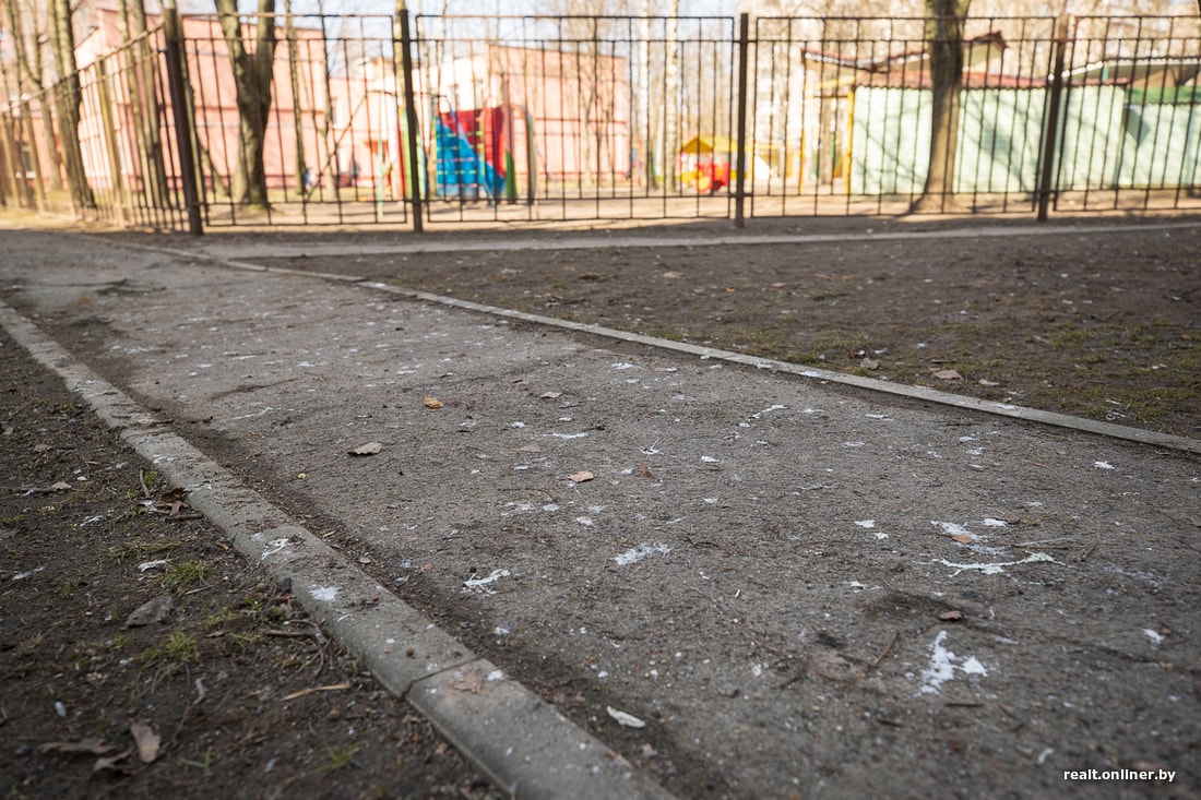 На территории самого сада чисто (видимо, как раз убрались), но о масштабах проблемы можно судить по припаркованным рядом автомобилям и стоящим лавочкам.