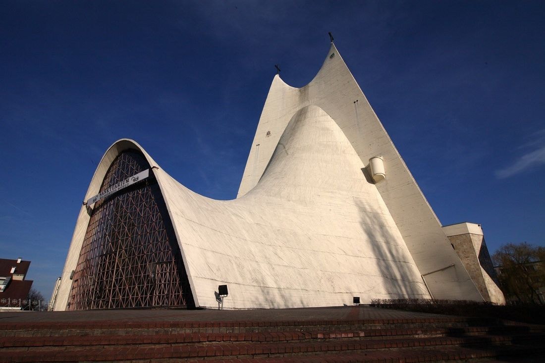В польской социалистической архитектуре был специфический жанр, практически отсутствовавший в других странах народной демократии. Почти везде господствовал атеизм разной степени воинственности, но Польша (даже в формате ПНР) была настолько религиозна, что полностью запрещать строительство новых костёлов местные коммунисты не могли. Практически в каждом польском городе, обычно в спальных районах, посреди привычных и нам панелек строились необычные модернистские храмы, образцы уникального в своем роде социалистического культового зодчества.