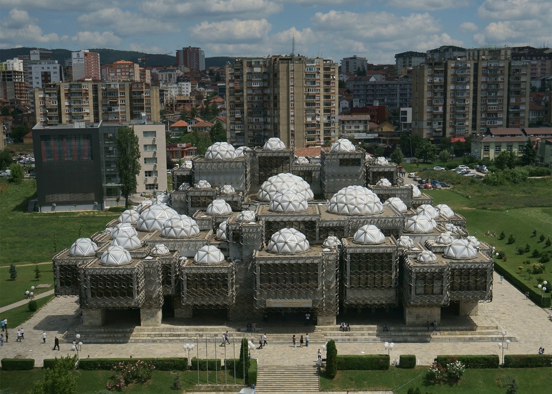 Фантазии хорватского архитектора Мутняковича можно только позавидовать. Для главной библиотеки Косово, тогда еще бывшего частью единой Югославии, он предложил фантасмагорический образ, которому позавидовал бы и белорусский «Алмаз знаний». Нагромождение параллелепипедов разных форм и размеров образует сложную асимметричную структуру, в минимальной степени ассоциирующуюся с книгами.
