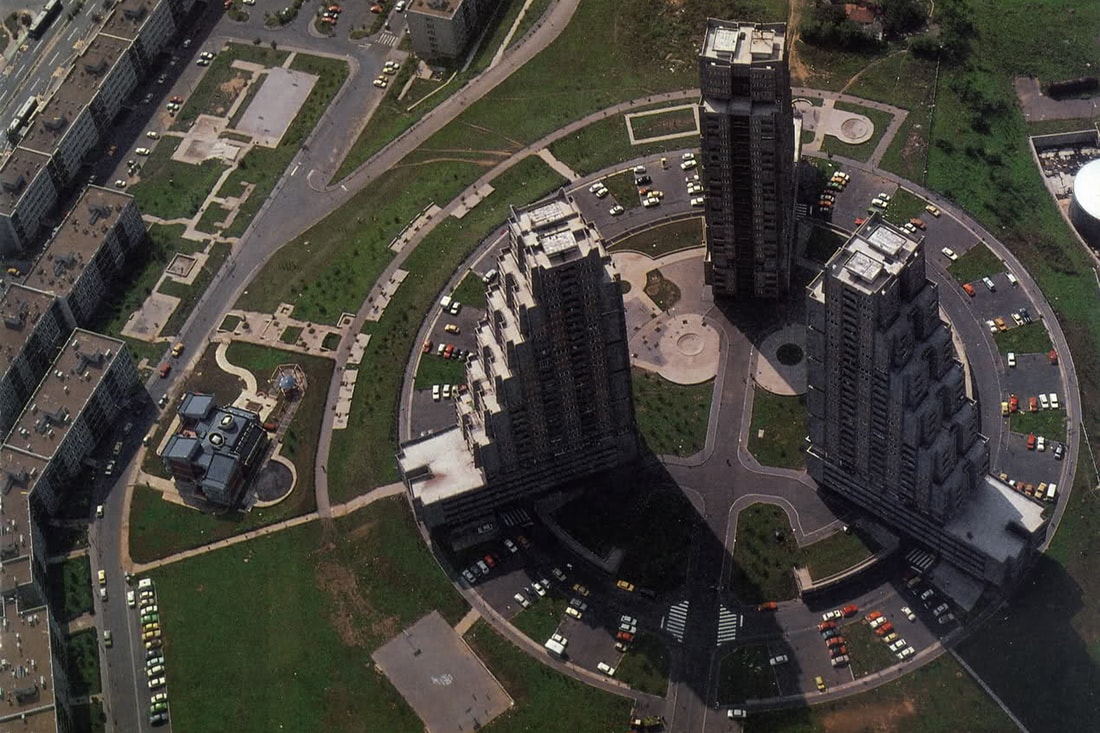 «Восточные врата» представляют собой три 28-этажные башни-близнеца высотой 85 метров каждая. В комплексе они формируют собой кольцо, из-за своеобразного силуэта сразу же ставшее городским символом. Несмотря на этот статус, в 1990-е эти здания быстро пришли в упадок: у их жильцов были систематические проблемы с водоснабжением, канализацией и лифтами, а некачественное строительство приводило к тому, что с фасадов башен просто отваливалась отделка. Тем не менее у архитектора Веры Веркович получилось создать нечто, что чувствовало бы себя как дома во многих фильмах про смутное будущее человечества.