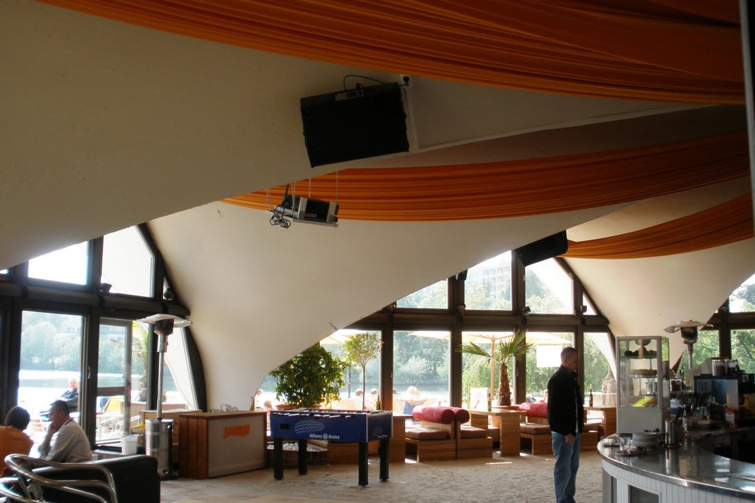Это был также ресторан, но уже Seerose («Кувшинка»), и получился он даже элегантнее своего мексиканского прообраза. С высоты птичьего полета он действительно напоминал цветок и долгое время пользовался популярностью среди местных жителей. Кстати, в Потсдаме, побратиме белорусской столицы, был еще и ресторан Minsk более консервативной формы, а в самом Минске также можно найти здание-гиперболоид — это павильон «Белэкспо» на проспекте Победителей.
