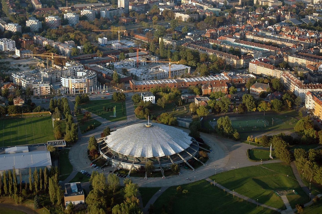В середине 1960-х годов в стране развитого социализма и окружающих ее государствах народной демократии в моду вошел жанр спортивно-зрелищных сооружений. Эти по современным меркам многофункциональные комплексы сочетали под одной крышей функции спортивных объектов для соревнований широкого спектра и площадок для разнообразных массовых мероприятий: концертов, выставок, съездов партийных и общественных организаций. К примеру, в Минске объектом такого рода стал Дворец спорта на проспекте Победителей. В первой половине 1970-х годов подобное сооружение получил и польский Познань.