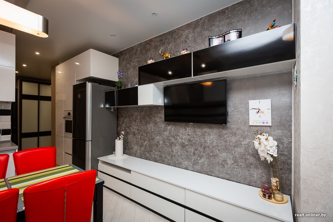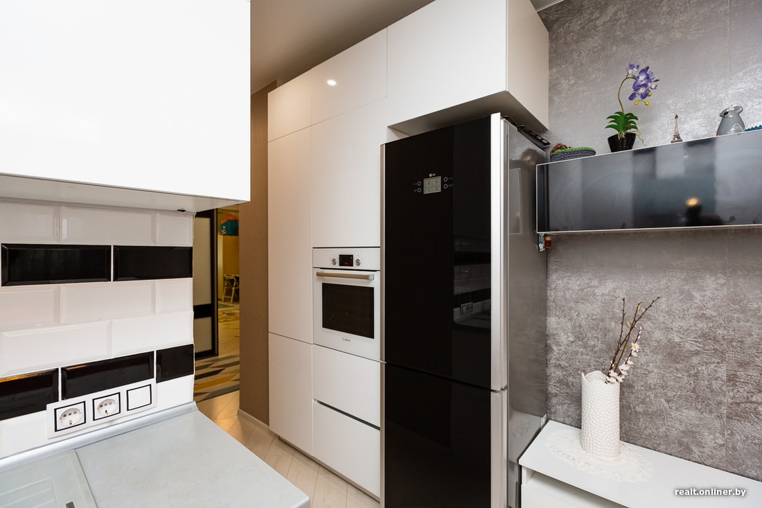 Что касается мебели, то частично мы обставили новое жилье предметами из предыдущей квартиры. Новую кухню из акрила, мебель в спальню и коридор изготавливали на заказ в Лиде по более низкой цене, нежели в Минске, да еще и в рассрочку.