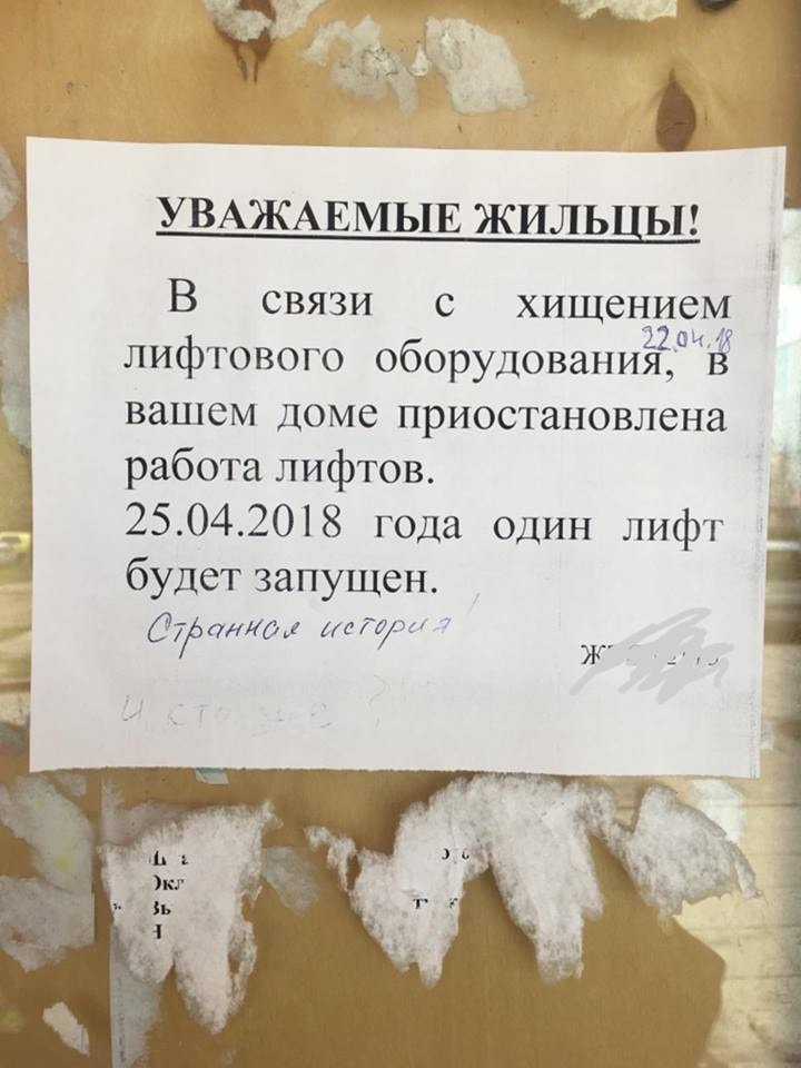Лифты в наших многоэтажках часто заставляют грустить, но в этот раз причина поломки механизма была действительно веская. В один из выходных дней неизвестные выбили кусок стены на техническом этаже, пробрались в машинное отделение и выкрали оттуда лифтовое оборудование. Наверное, ворам проще было бы выбить дверь, но после прошлого раза коммунальщики установили туда металлическую...
