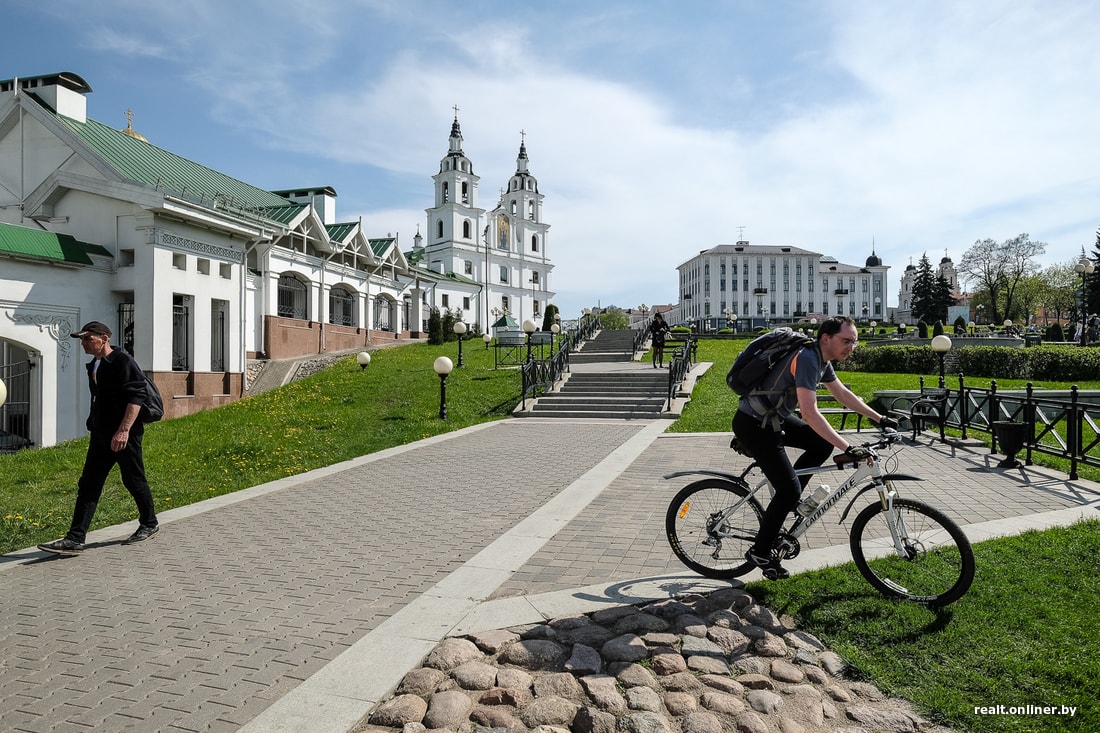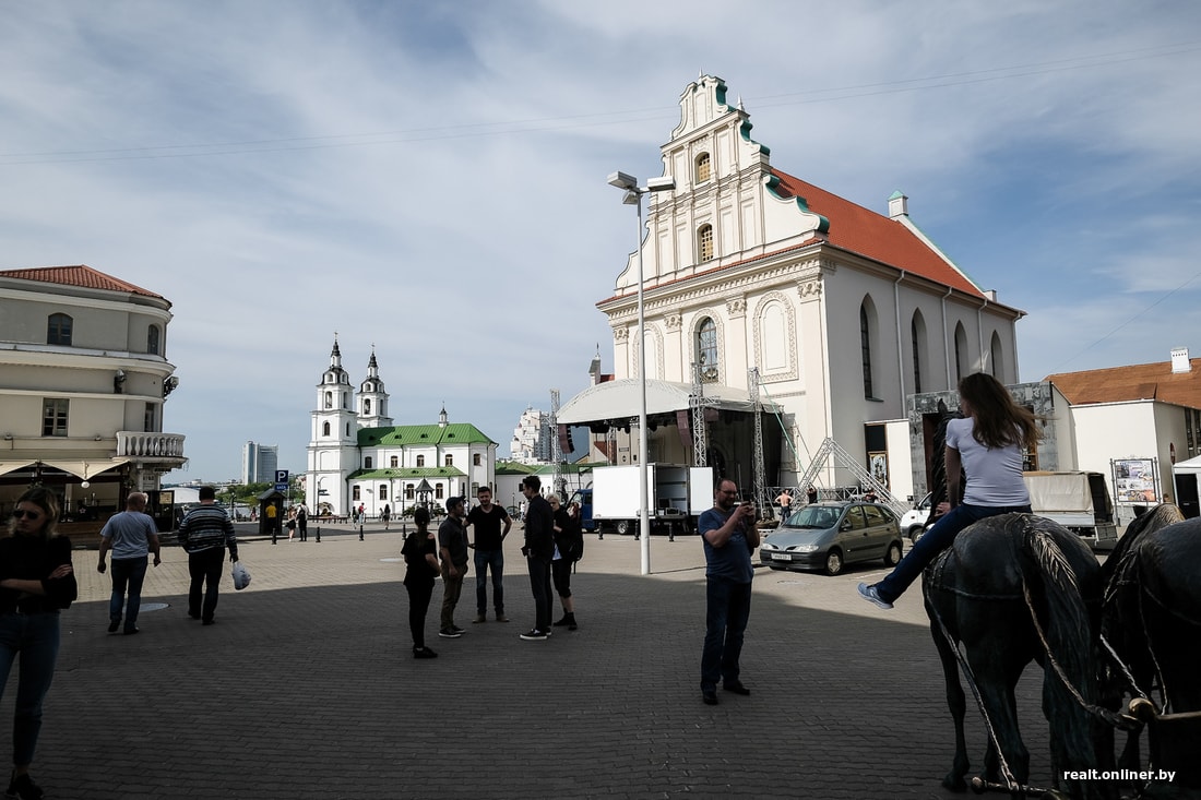 Только представьте: сложись история чуть иначе, сейчас старый Минск представлял бы собой одну улицу в Раковском предместье, площадь Свободы бы украшал 22-этажный Дом знаний, а католический и православный соборы стояли бы на фоне Дома политпросвещения и монумента борцам за советскую власть — примерно так, как Петропавловская церковь на Немиге, старейшее здание города, стоит ныне перед стеной «дома Мусинского». Обескураживающая перспектива. Минск, спасибо, что живой.