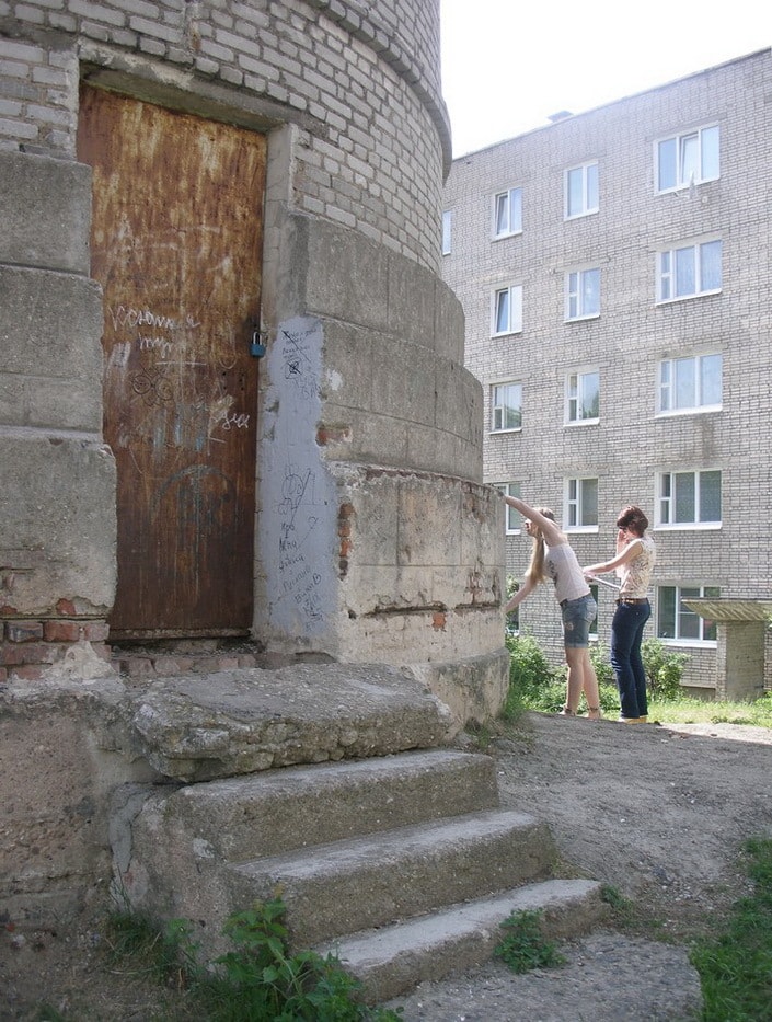 Помните затерянный мир под названием Борисовщина? В его существование невозможно поверить, если там не побывать. Там (помимо кучи всего) как раз есть башня. Единственное объяснение, почему она до сих пор потихоньку разваливается без дела, — это то, что богачи не могут отыскать к ней путь, чтобы купить. Кружат беспомощными толпами по Хойникскому району. Между тем еще в семидесятые эта башня использовалась местным колхозом под жилье, внутри были устроены квартиры.