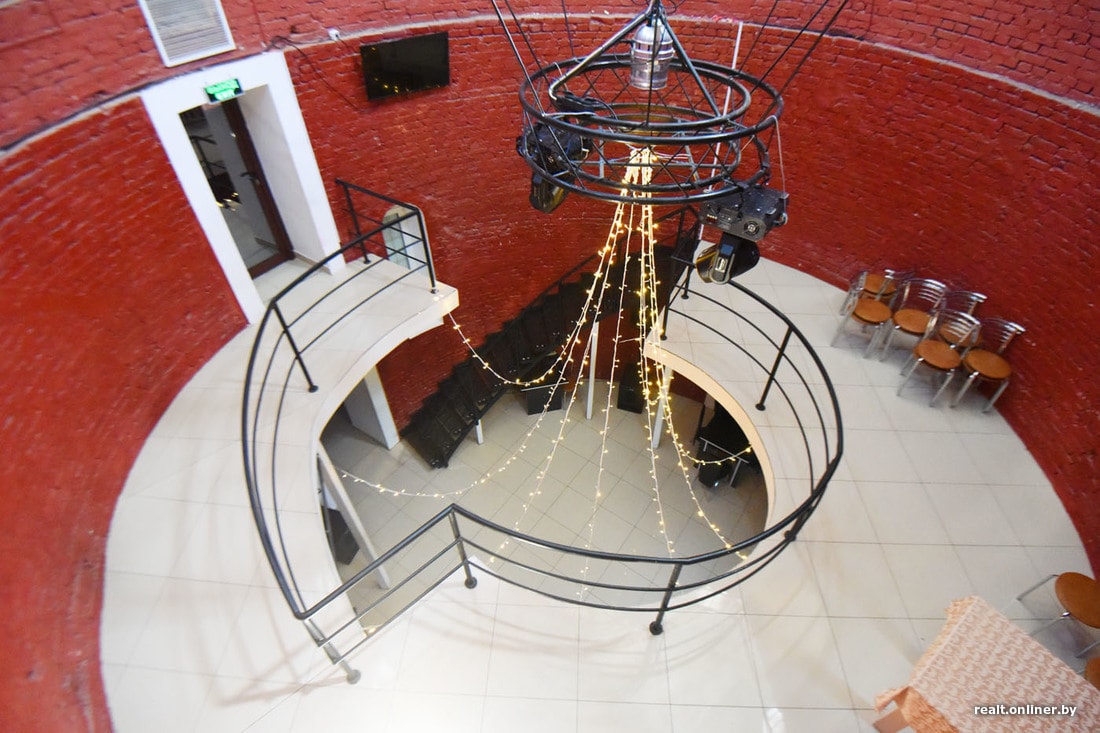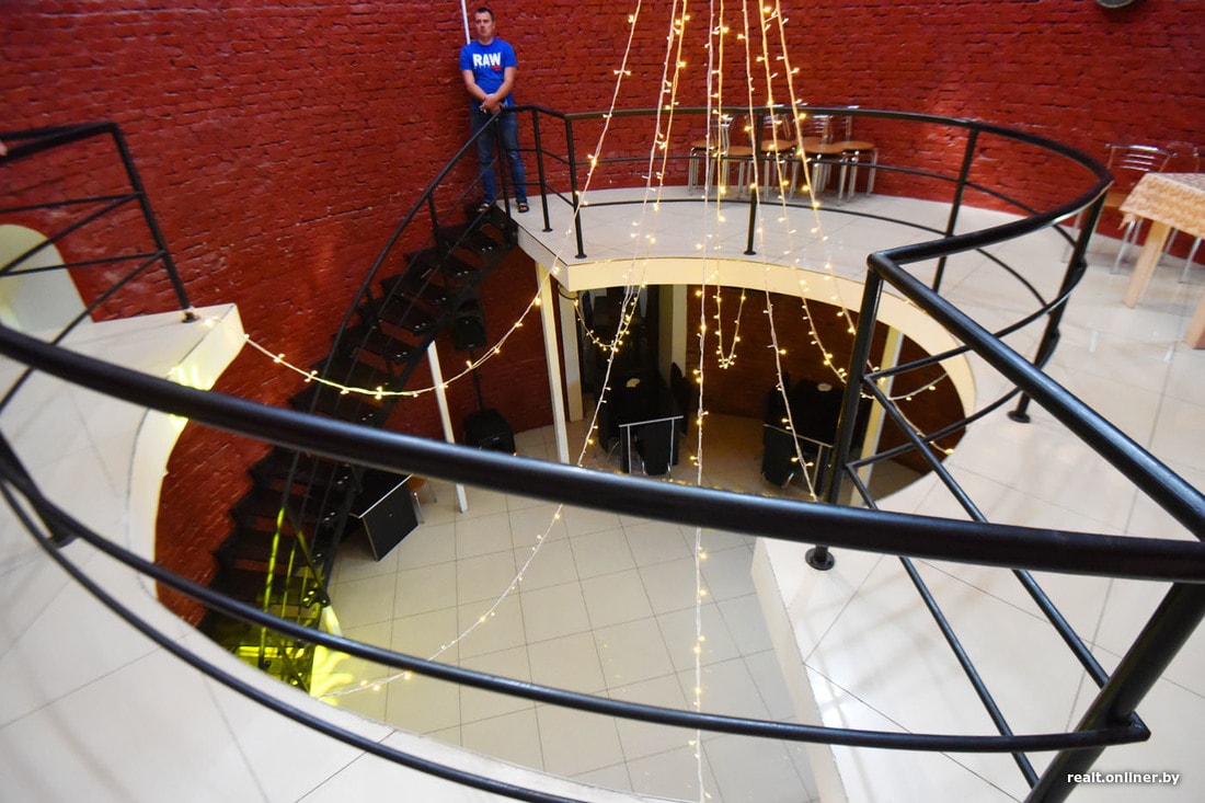Но настоящим владельцам от таких прибауток не смешно: контролеры вынут душу за безопасность. Вдоль стены изнутри идет по спирали лестница в небеса. Да только на уровне второго этажа, где стоят столики, она обрезана: чтобы небеса не слишком манили.