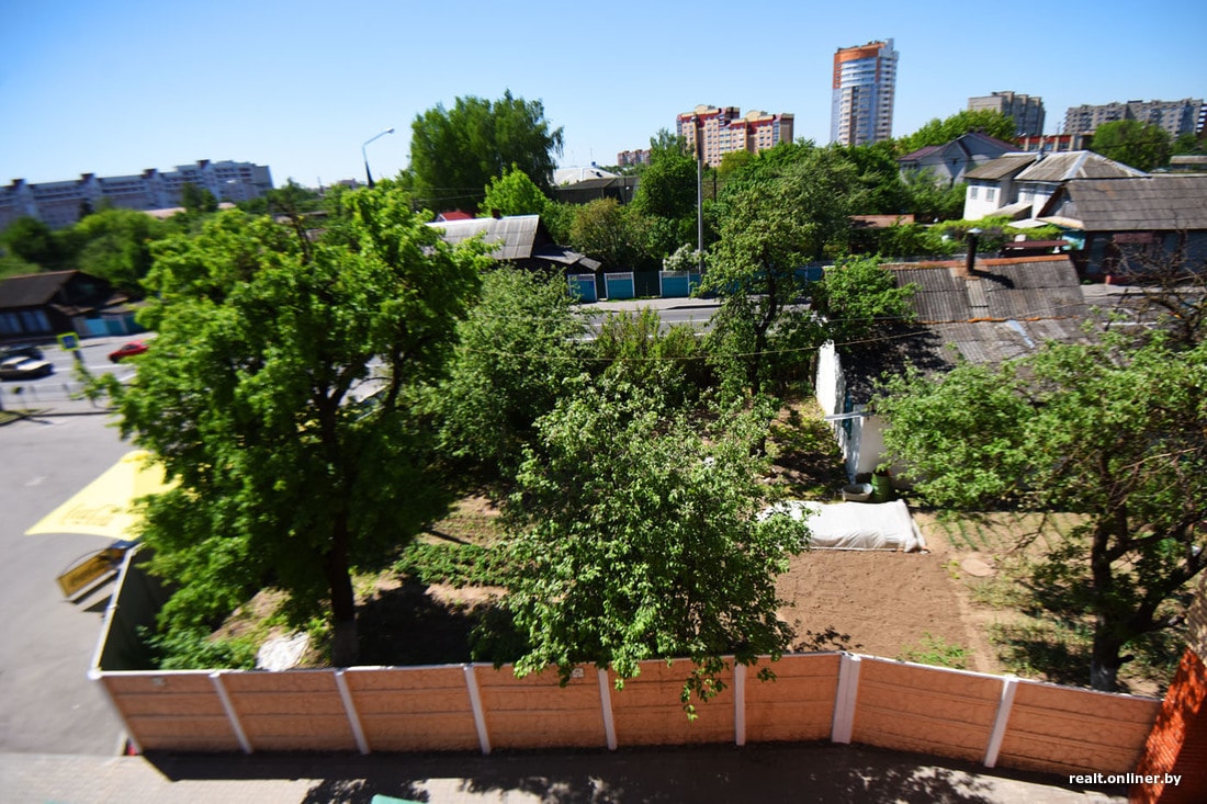 Из световых окошек открывается какой уж есть вид на крышу и чьи-то грядки.