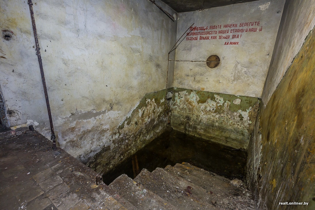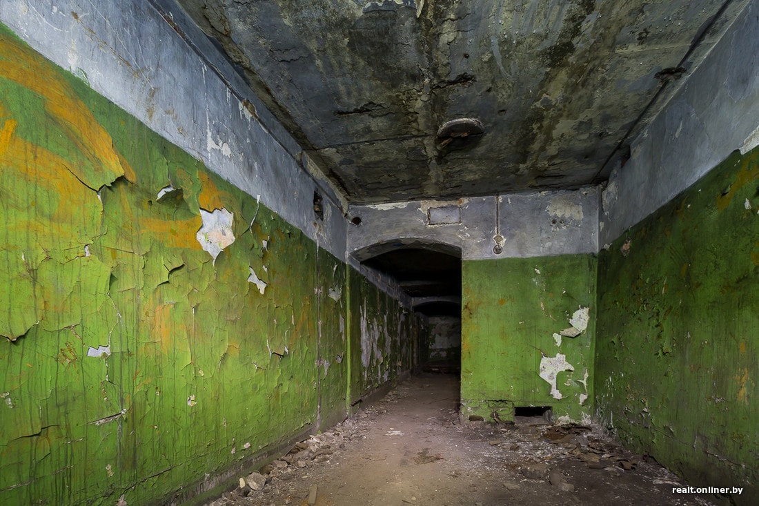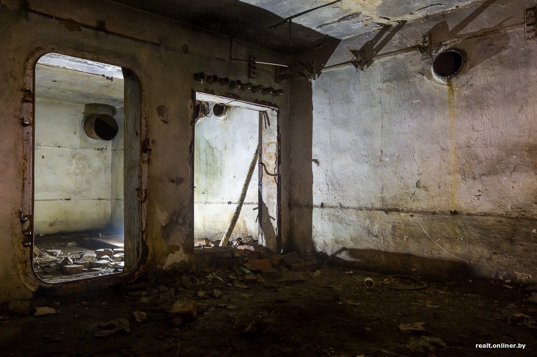 К одной из шахт ведет длинная потерна. Вдоль ее стен раньше были закреплены кронштейны, по которым в центральный блок тянулись провода.