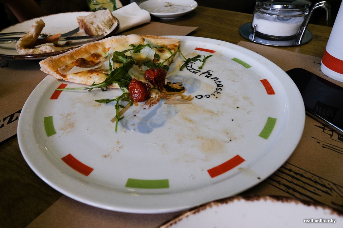 Добавим, что в помещении было очень душно, кондиционер не справлялся со внезапно опустившейся на Минск жарой. Италии такая духота в заведении простительна, Минску — нет.