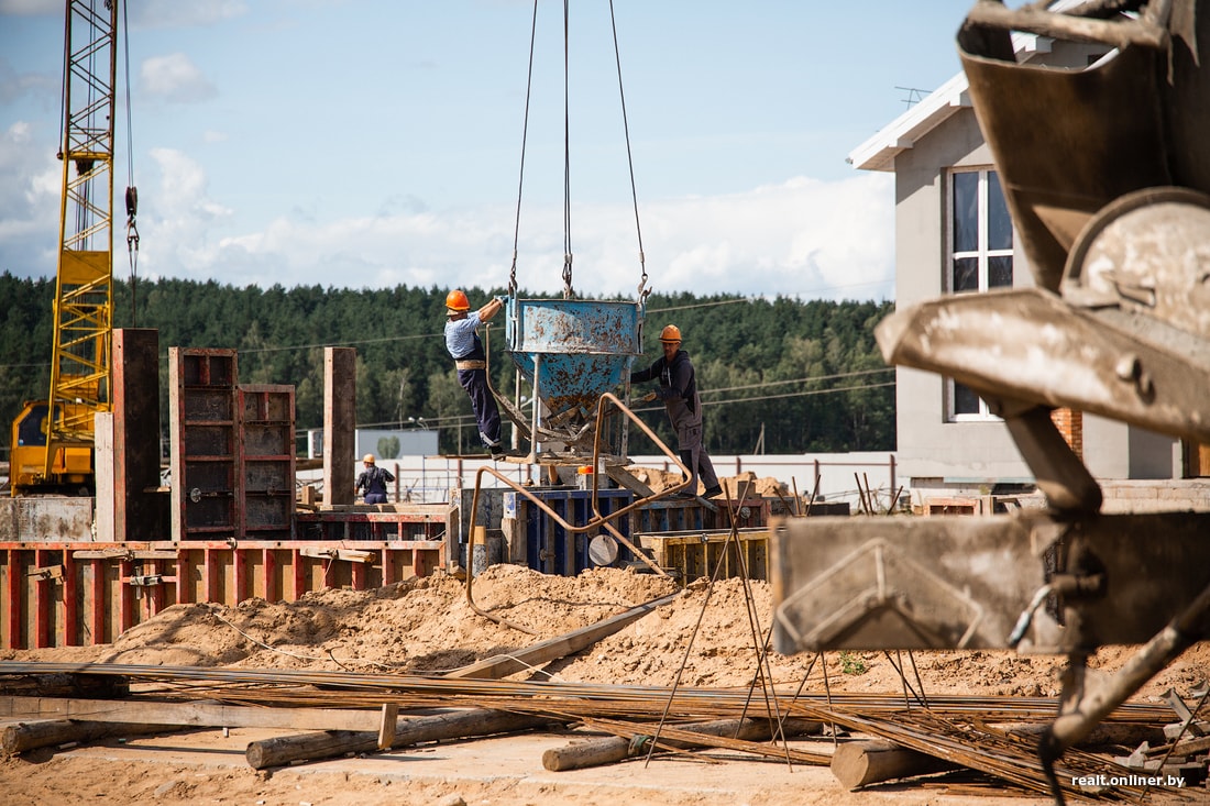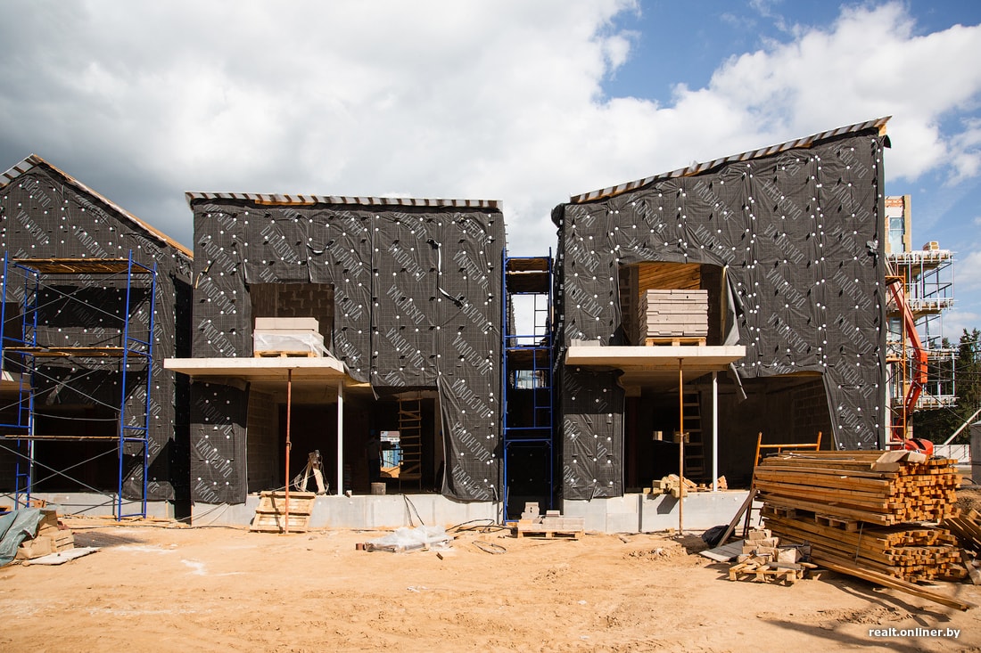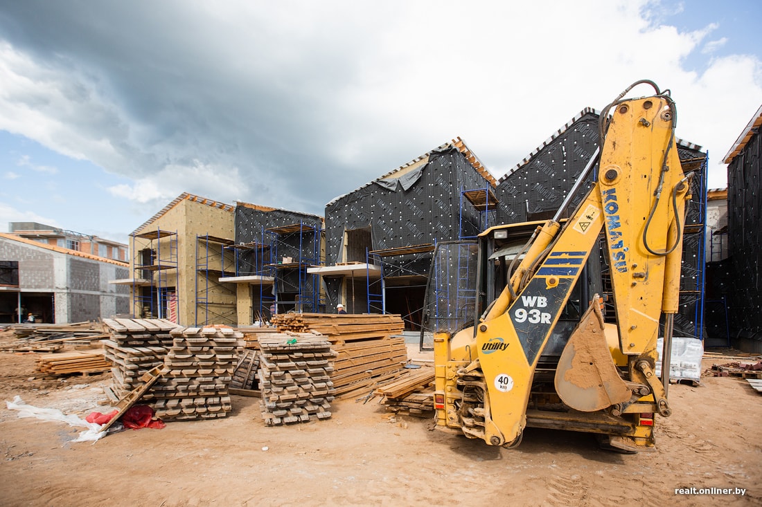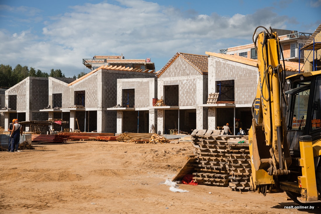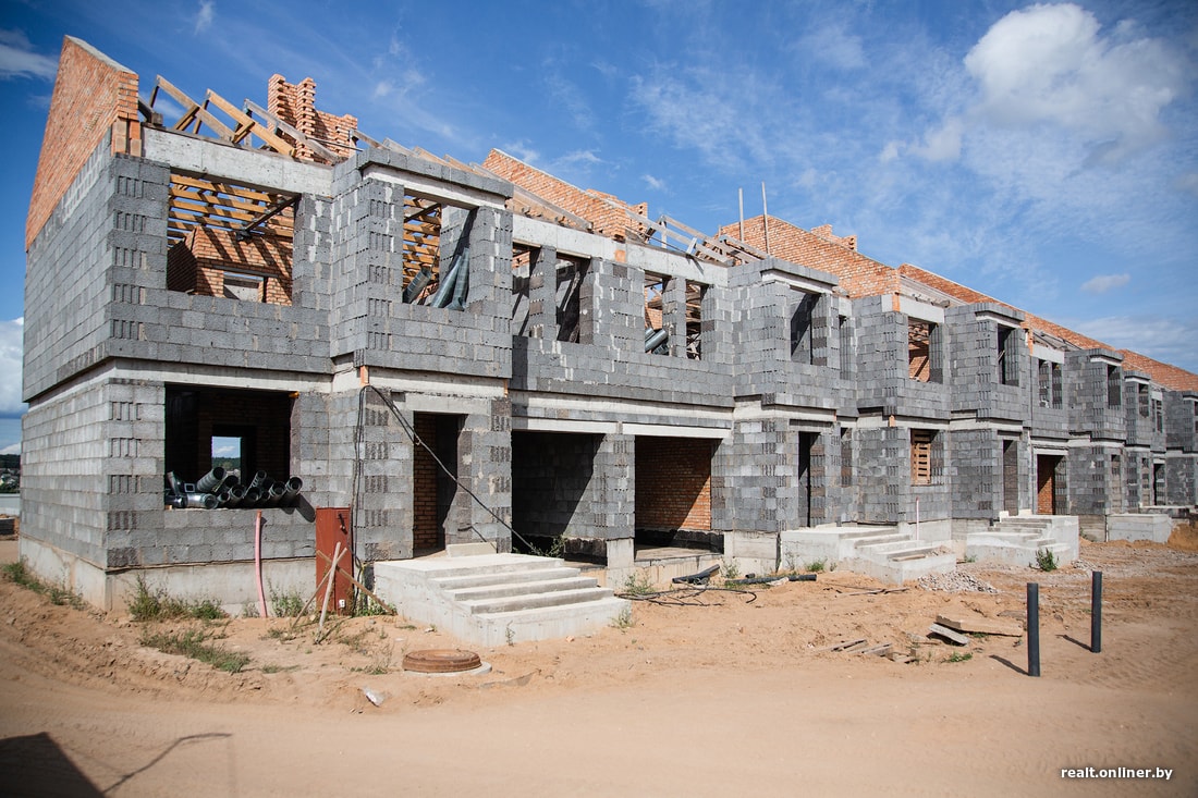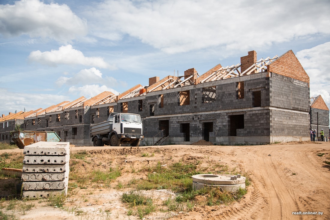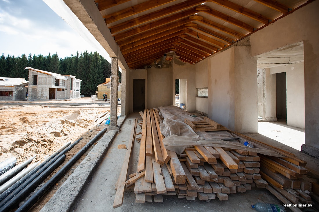 В 14 километрах от Минска, возле Кургана Славы продолжается строительство коттеджного поселка «IT-деревня Сосновое». Застройщик ДСПМК-94 планировал завершить все работы (включая благоустройство) до конца 2016 года, но в отведенные исполкомом сроки не уложился. Сегодня, по признанию представителя компании, готовность проекта составляет где-то 70%. Всего в «айтишной» деревне 140 домов. Многие из них уже заселены, другие достраиваются. В ожидании дольщиков свободными остаются шесть коттеджей и один пустой участок площадью 8,5 сотки. Степень готовности у выставленных на продажу объектов разная: где-то есть только фундамент, где-то стоит газосиликатная «коробка» без окон.